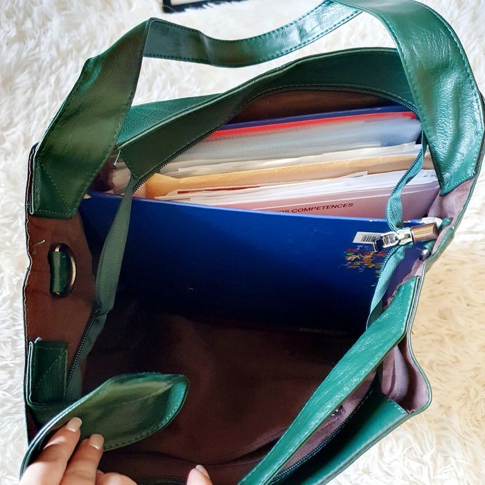 👜 Grand Sac à main souple sac de cours école lycée cabas fourre-tout en simili cuir vert neuf anses et bandoulière MALLOW 📸 Grande capacité, Doublure polyester marron, boucles argentées foncées, 2 anses en simili cuir ainsi que la possibilité de mettre une bandoulière réglable en simili cuir, il y a 1 poche zippée sur le devant du sac. Sac mode, hyper Pratique et tendance: 1 grande poche principale zippée ( zip de 45.5 cm), devant une petite poche zippée (zip de 20.2 cm) à l'intérieur, il y a une petite poche zippée d'un côté et de l'autre, 2 petites poches non zippées 📏 Dimensions du sac: Largeur 45.4 cm Hauteur 37.9 cm Profondeur 15 cm Hauteur des anses 26 cm jusqu'aux bords du sac Dimensions petite poche avant à l'extérieur H 18 cm et l 20.2 cm Dimensions petite poche zippée intérieure H 11.2 cm x l 17 cm Dimensions des 2 poches intérieures non zippées H 10.5 cm x l 9.3 cm et H 10.5 cm x l 9.4 cm 📍 J'ai mis une feuille A4 sur les photos pour que vous puissiez vous rendre compte de la taille de ce sac ainsi qu'un classeur classique archi rempli. On peut encore y mettre des cahiers, des livres et des affaires personnelles (agenda, gourde, trousse...) Neuf jamais porté. Prix boutique 49.90e #themooshishop #themooshishopaccessoires #themooshishopsac #sac #cabas #sacàmain #sacamain #sacfourretout #sacfourretoutneuf #sacfourretoutfemme #sacsimilicuir #sacensimilicuir #sacsimilicuirvert #sacecole #sacdecours #neuf #vert #sacvert #similicuirvert #grandsacamain #grandsacdecours #grandsaclycée #sacpratique #sactendance #itbag #itbag2025 #sactendance2025 #cadeaufemme #cadeau