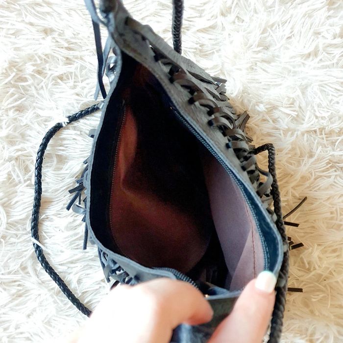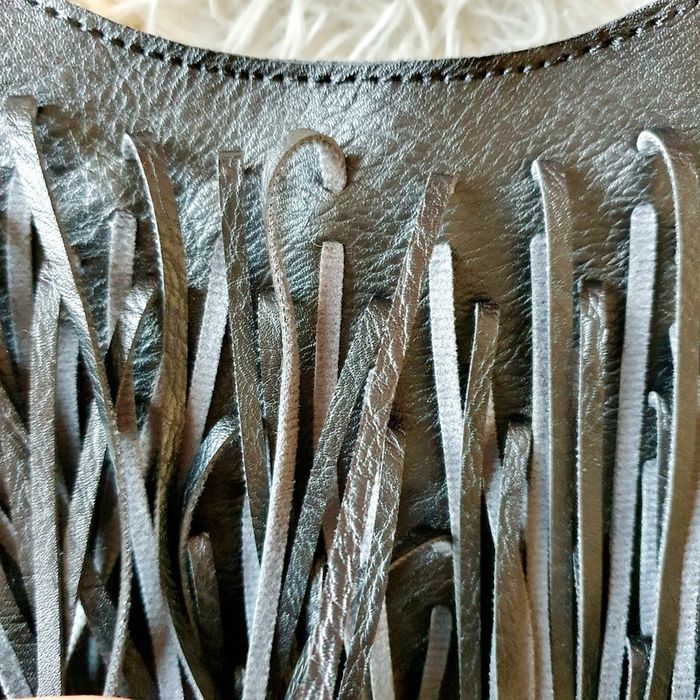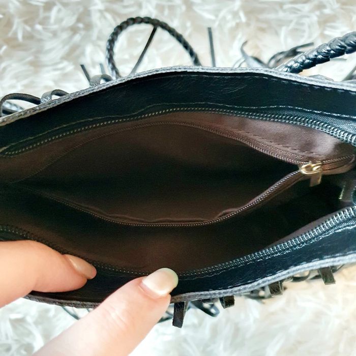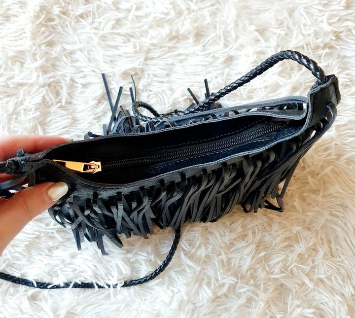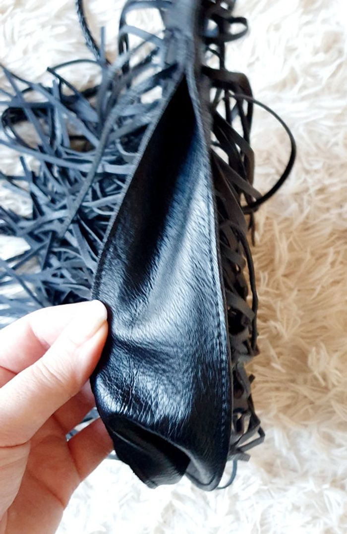 👜 Sac à main pochette demie lune simili cuir noir franges neuf bandoulière simili cuir Zida - photo numéro 18