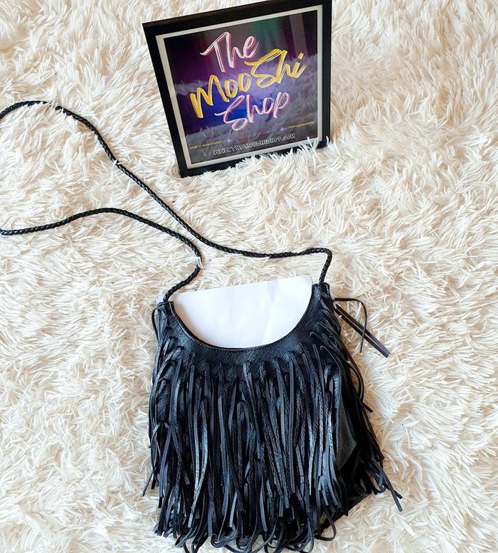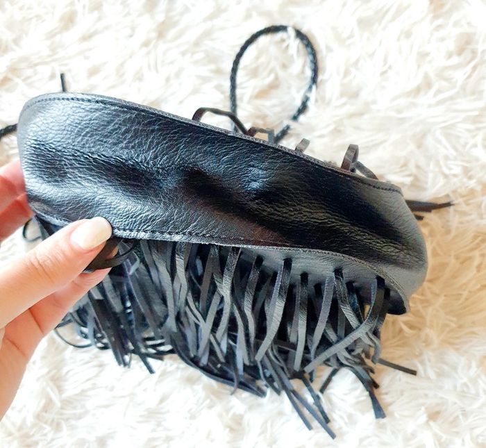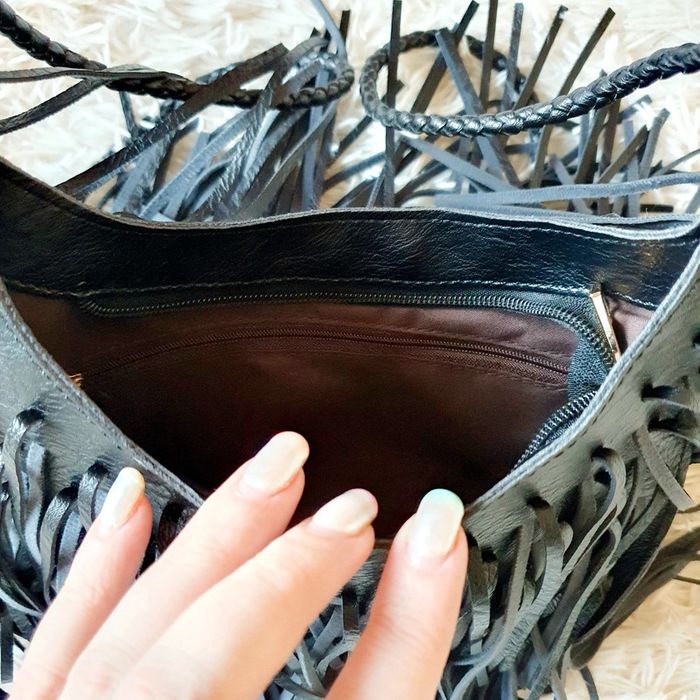 👜 Sac à main pochette demie lune simili cuir noir franges neuf bandoulière simili cuir Zida - photo numéro 9