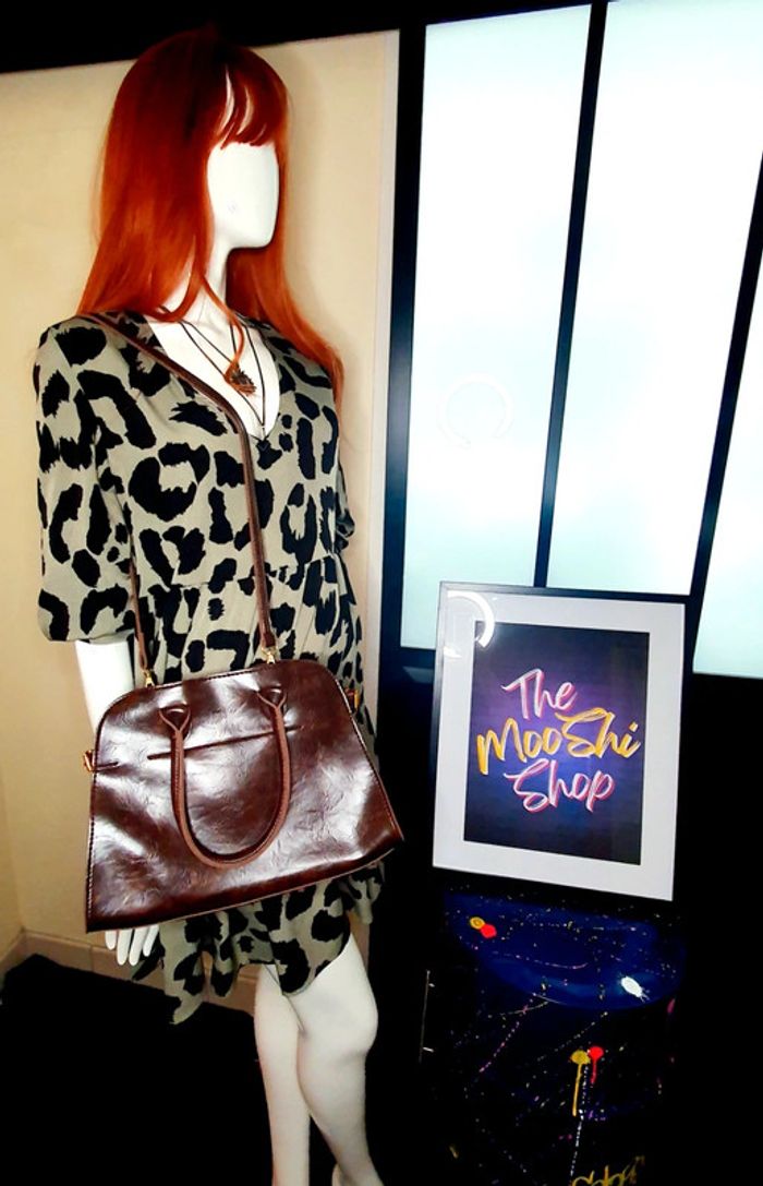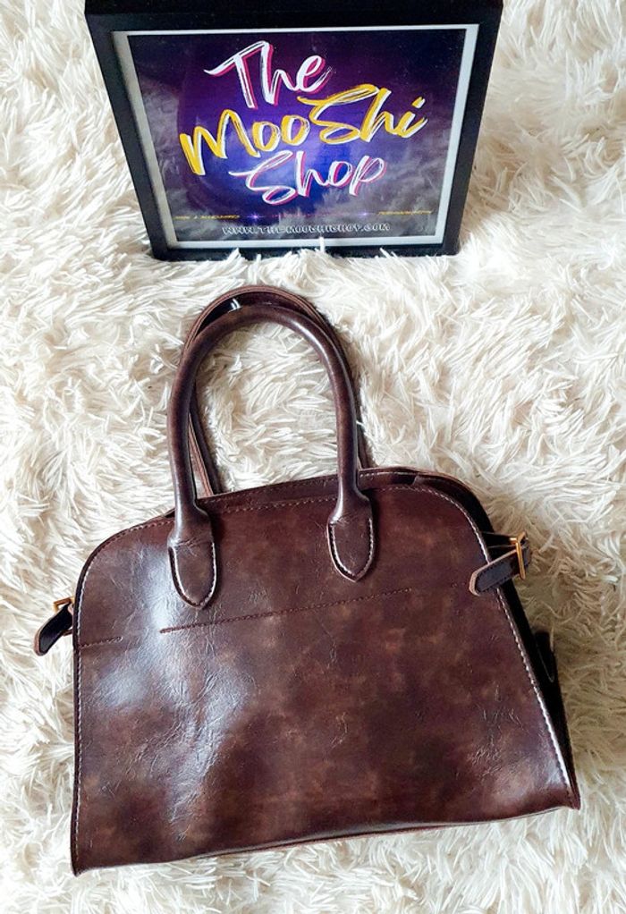 👜 Sac à main forme rétro arrondie fourre-tout simili cuir marron foncé neuf SELENA
