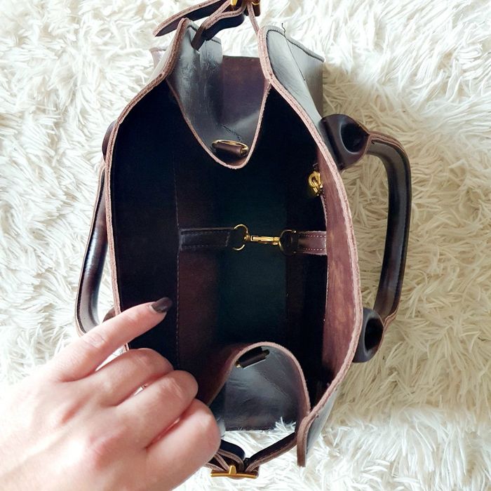 👜 Sac à main forme rétro arrondie cabas fourre-tout en simili cuir marron foncé boucles dorées vieillies neuf anses bandoulière SELENA 📸 Pas de doublure, sangle avec boucles dorées sur chaque côté pour régler la capacite de stockage. Sac mode, hyper Pratique, tendance et léger. Il a 1 grande poche principale fermée par un lien de simili cuir et une boucle dorée vieillie. A l'intérieur, il y a une petite poche zippée (zip de 10.5 cm) sur un côté du sac. Il y a 4 clous dorés vieillis sous le sac pour le protéger. Bandoulière en simili cuir amovible et réglable. 📏 Dimensions du sac: Largeur haut du sac 23.4 cm et bas du sac 32.5 cm Hauteur 23.5 cm Profondeur 12 cm Hauteur des anses 13.5 cm et 15.5 cm au bord des coutures Dimensions petite poche zippée intérieure H 10.4 cm x l 12.5 cm Longueur max de la bandoulière 110.3 cm 📍 J'ai mis une feuille A4 sur les photos pour que vous puissiez vous rendre compte de la taille de ce sac ainsi qu'un classeur classique bien rempli dans le sac. Il y a encore de la place pour d'autres cahiers ou livres. La pression ne se ferme pas avec le classeur à l'intérieur. Neuf jamais porté. Prix boutique 59.90e #themooshishop #themooshishopaccessoires #themooshishopsac #sac #cabas #itbag #itbag2024 #itbag2025 #sacdecours #saclycee #sacecole #sacàmain #sacamain #sacfourretout #sacfourretoutneuf #sacfourretoutfemme #sacretro #sacformeretro #sacselena #sacsimilicuir #similicuir #sacsimilicuirmarronfoncé #neuf #marron #marronfonce #sacpratique #itbag #itbag2025 #sactendance #sactendance2025 #cadeaufemme #cadeau