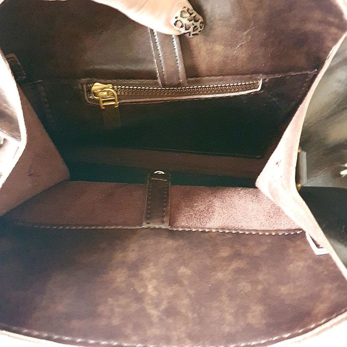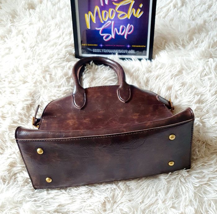 👜 Sac à main forme rétro arrondie fourre-tout simili cuir marron foncé neuf SELENA - photo numéro 15