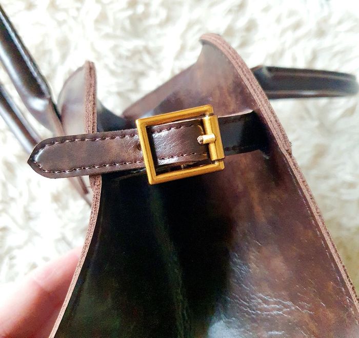 👜 Sac à main forme rétro arrondie fourre-tout simili cuir marron foncé neuf SELENA - photo numéro 10