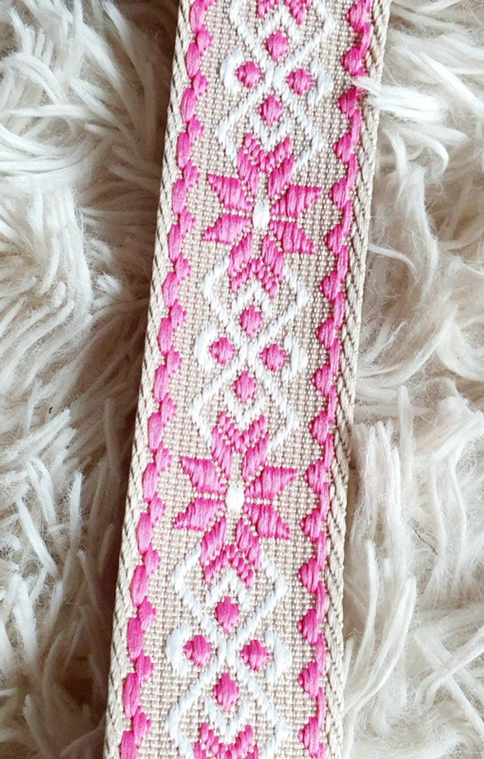 Sangle de sac à main sac banane beige fleur géométrique blanc blanche rose neuve neuf - photo numéro 5