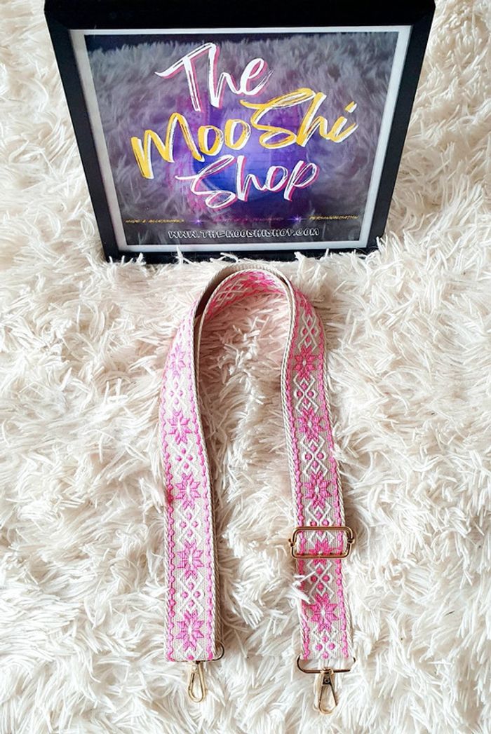 Sangle de sac à main sac banane beige fleur géométrique blanc blanche rose neuve neuf