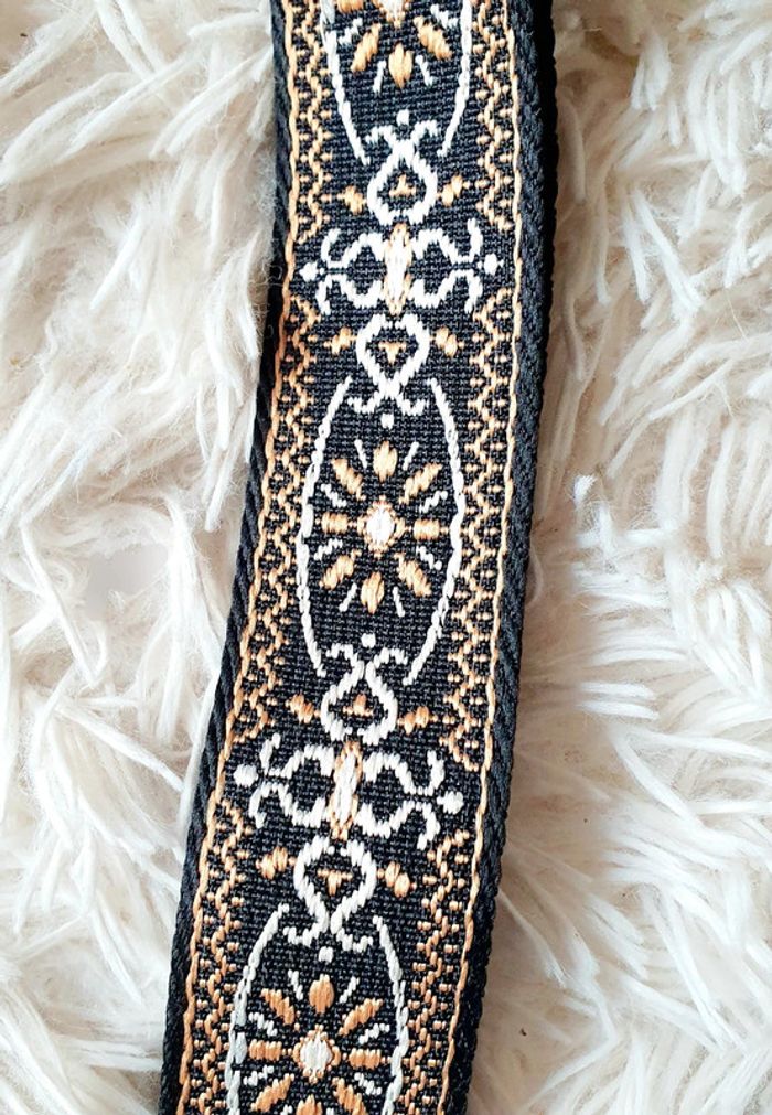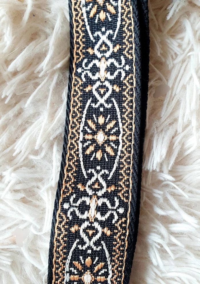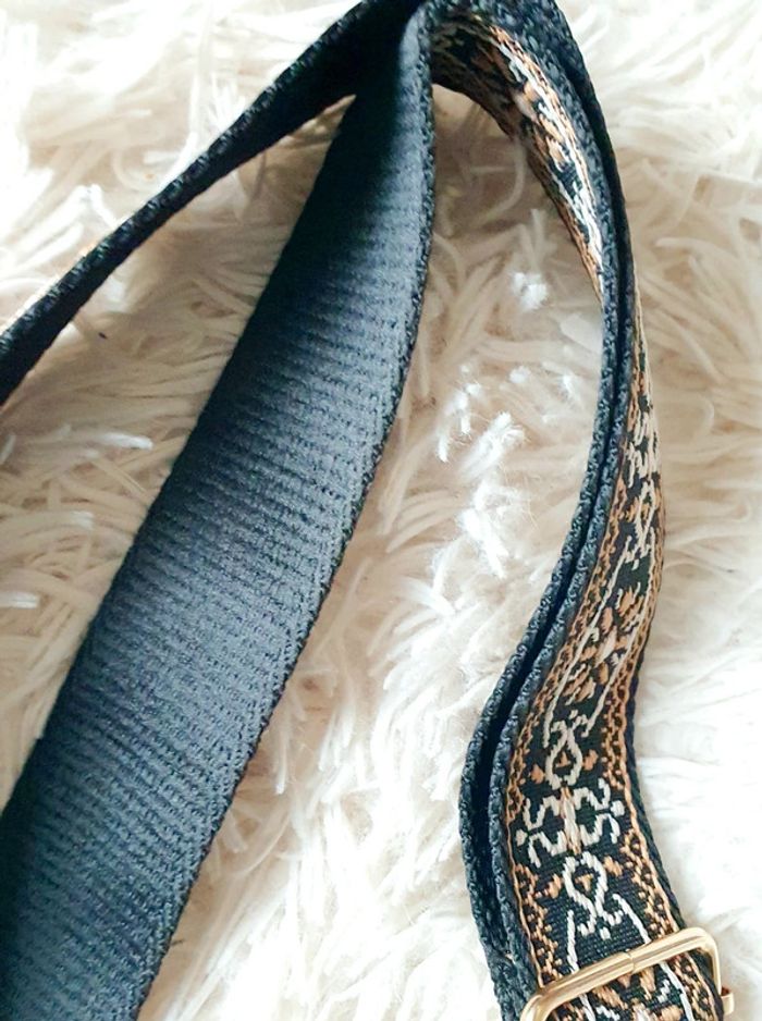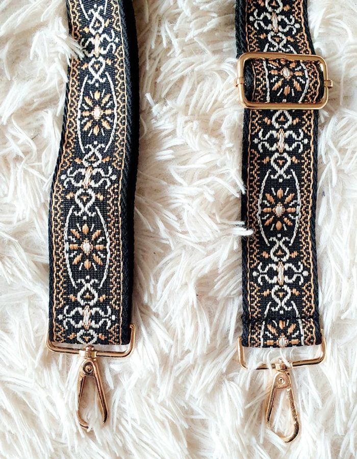 Sangle de sac à main sac banane noir arabesques marron camel écrue écru boucles dorées neuve neuf - photo numéro 3