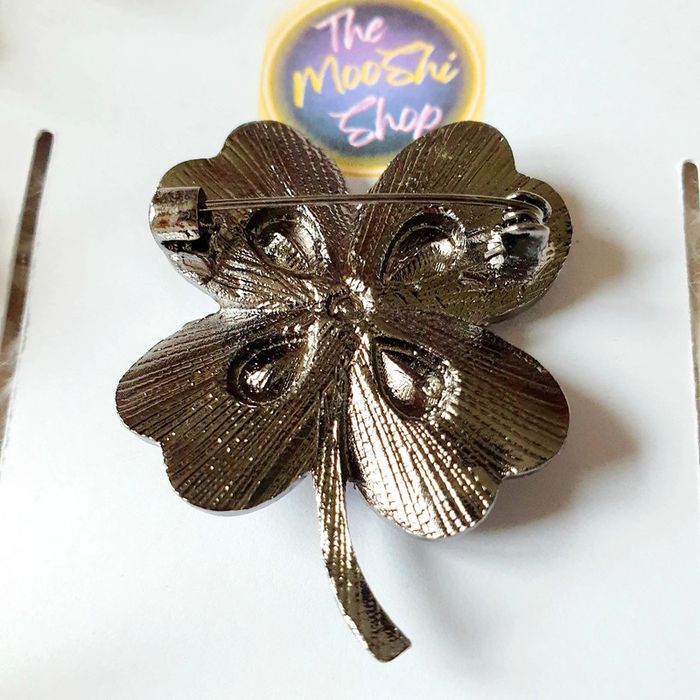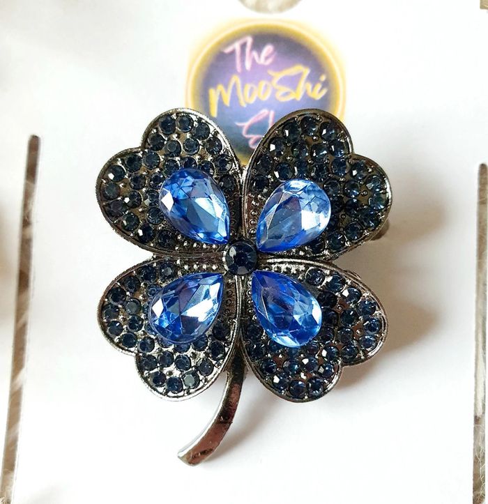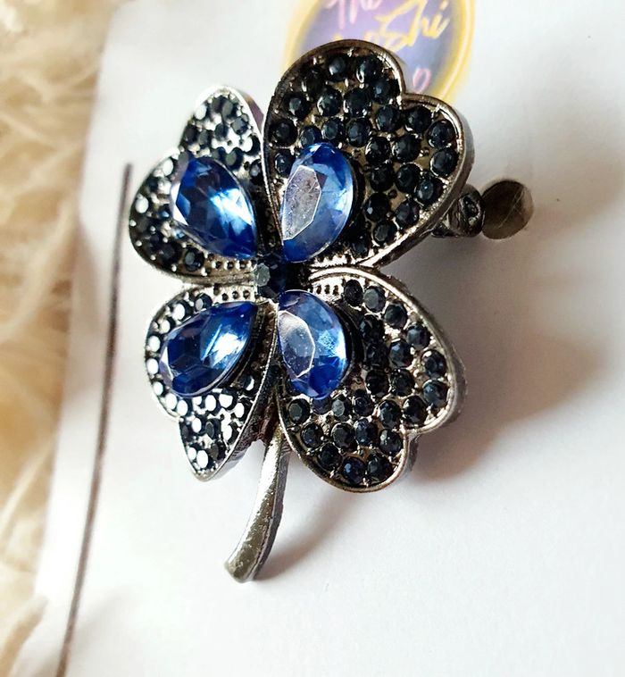 🍀 Broche trèfle à 4 feuilles porte bonheur multicolore strass bleu metal argent neuve neuf - photo numéro 8