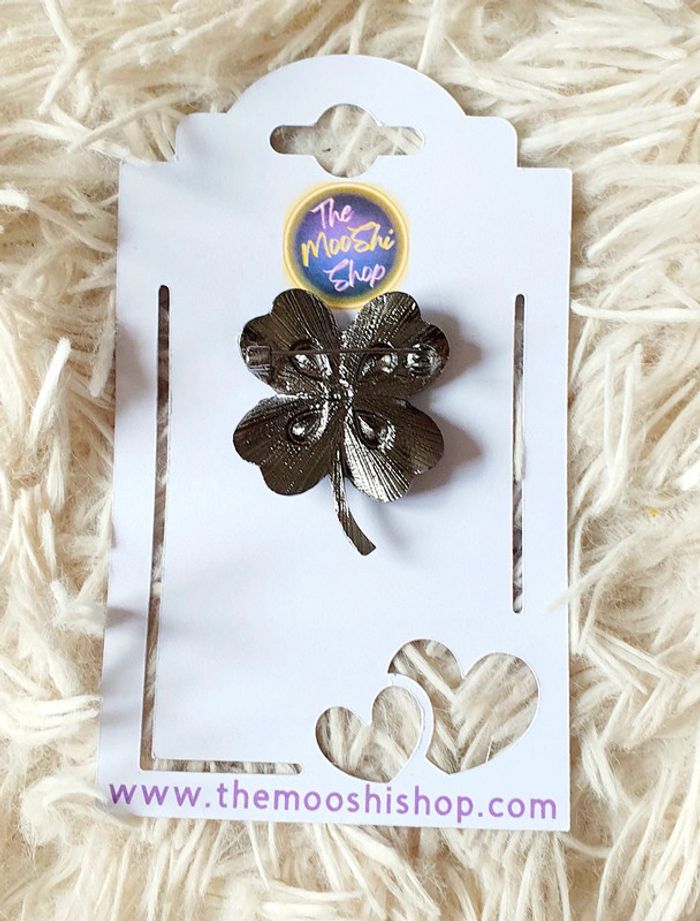 🍀 Broche trèfle à 4 feuilles porte bonheur multicolore strass bleu metal argent neuve neuf