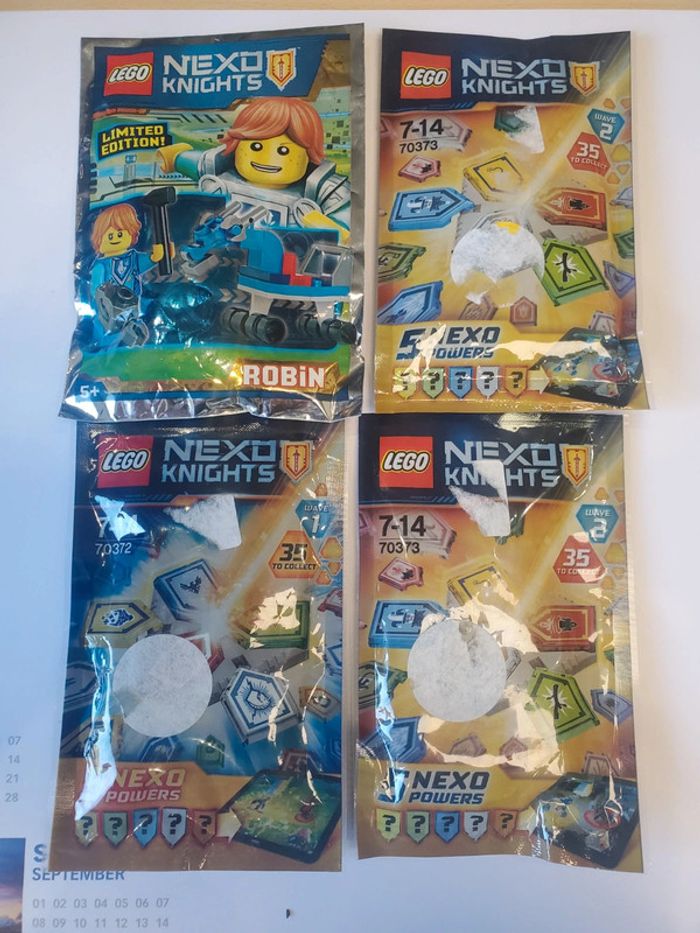Lego lot Nexo Knight . 1 chevalier et 3 sachets ecusson.