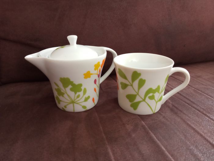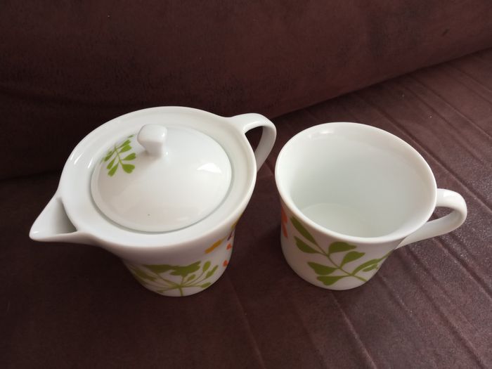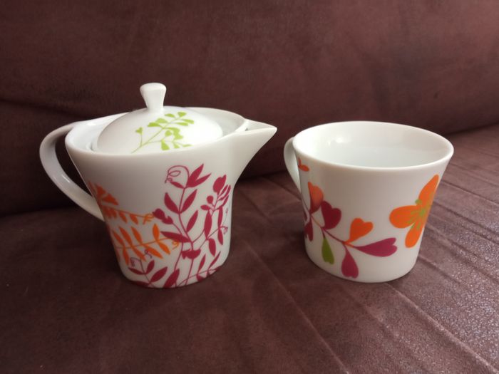 Élégant petit Ensemble Théière + Tasse assortie en Porcelaine (pour 1 personne) - photo numéro 1