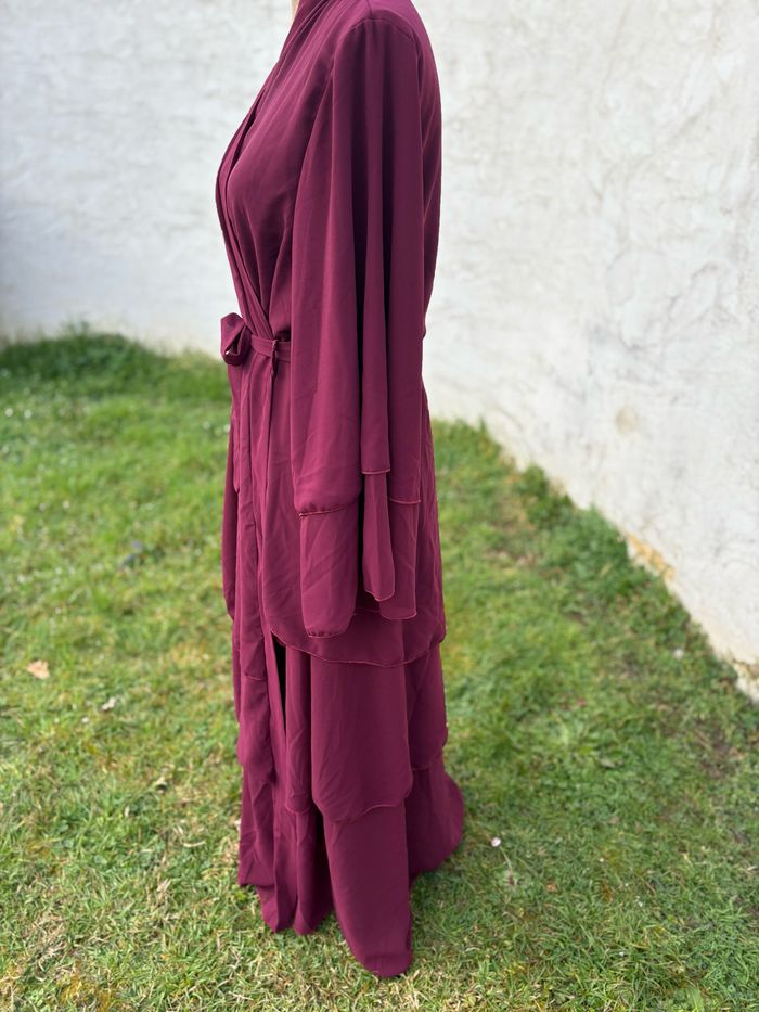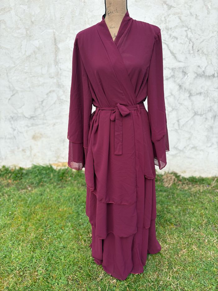👗 abaya ✨ Marque: New collection 🎨 Couleur: pourpre 📏Taille unique ( je porte du S-M) 📌 État : neuf avec étiquette 💰 Prix : 25€ 🚀 Envoi rapide 📦