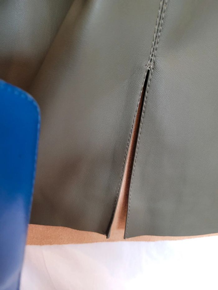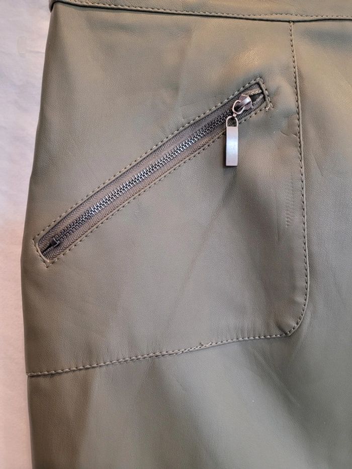 Jolie jupe de qualité, similicuir kaki - photo numéro 5