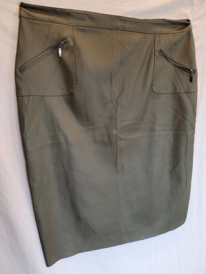 Jolie jupe de qualité, similicuir kaki - photo numéro 3