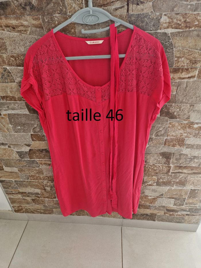 1 robe rose taille 46 marque camaieu ceinture au milieu boutons devant tout le long 100% viscose 57 cm sous l'aisselle jusqu'en bas 52 cm de large aisselle a aisselle 92 cm env taille du haut jusqu'en bas #laetie69_femmesTAILLE44 #laetie69_femmesTAILLE46