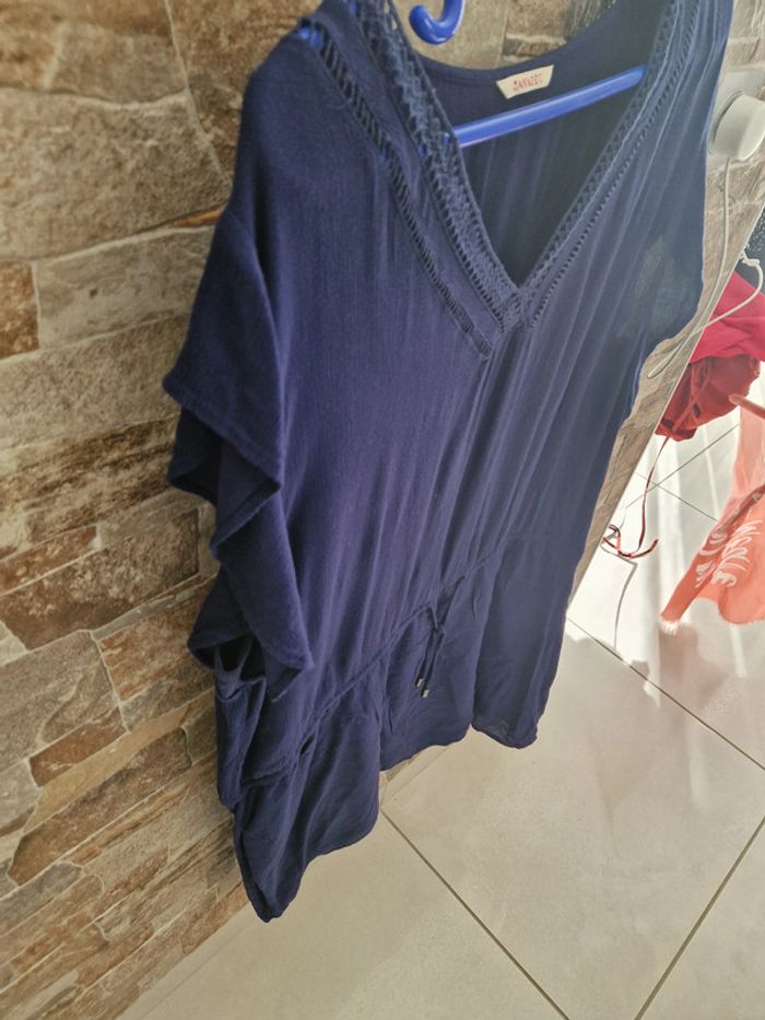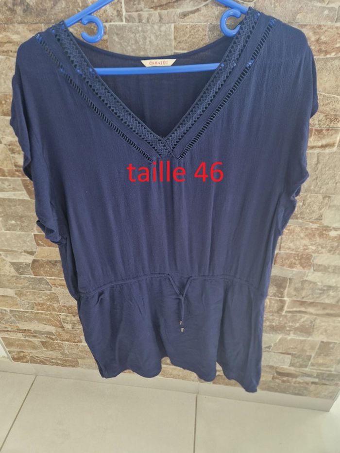 1 robe bleu marque camaïeu taille 46 lien milieu tissus ext 100% viscose tissus int 100% coton 60 cm sous l'aisselle jusqu'en bas 46 cm de large aiselle a aisselle 96 cm env taille du haut jusqu'en bas #laetie69_femmesTAILLE44 #laetie69_femmesTAILLE46