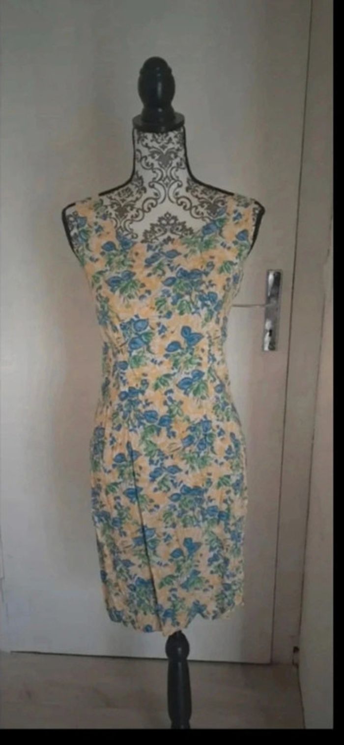 Robe à fleurs bleues vintage. Cintrés près du corps. Couleur un peu jaune. Très bon état. Sous aisselles 38cm Longueur 88cm Tout mes Prix sont négociable dans le raisonnable #femmeanais #femme38anais