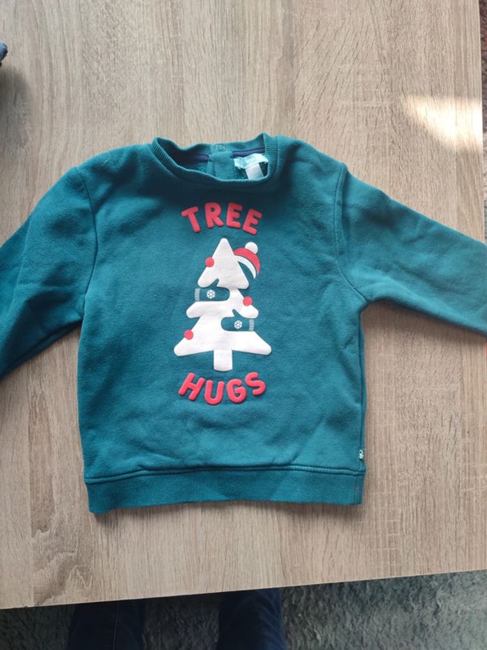 #Okaïdi #Okaïdigarçon #aneloubebegarçon #aneloubebe #aneloubebegarcon23mois Pull avec un sapin et un intitulé tree hug couleur bleu vert avec du rouge et du blanc Neuf jamais porté juste lavé