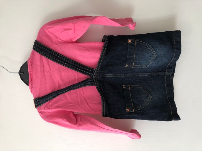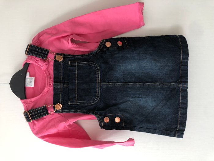 Ensemble fille 2 pièces, composé d'un haut manches longues et d'une robe. Marque Cadet Rousselle (haut) et Kiabi (bas) Taille 24 mois