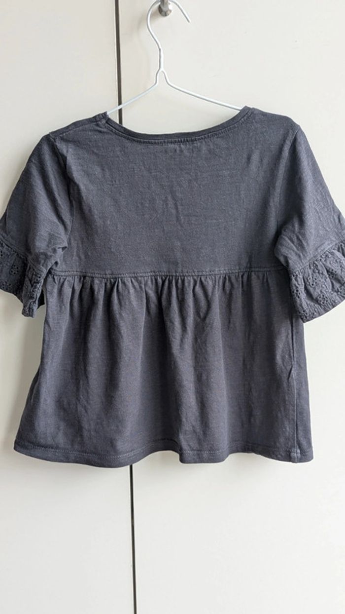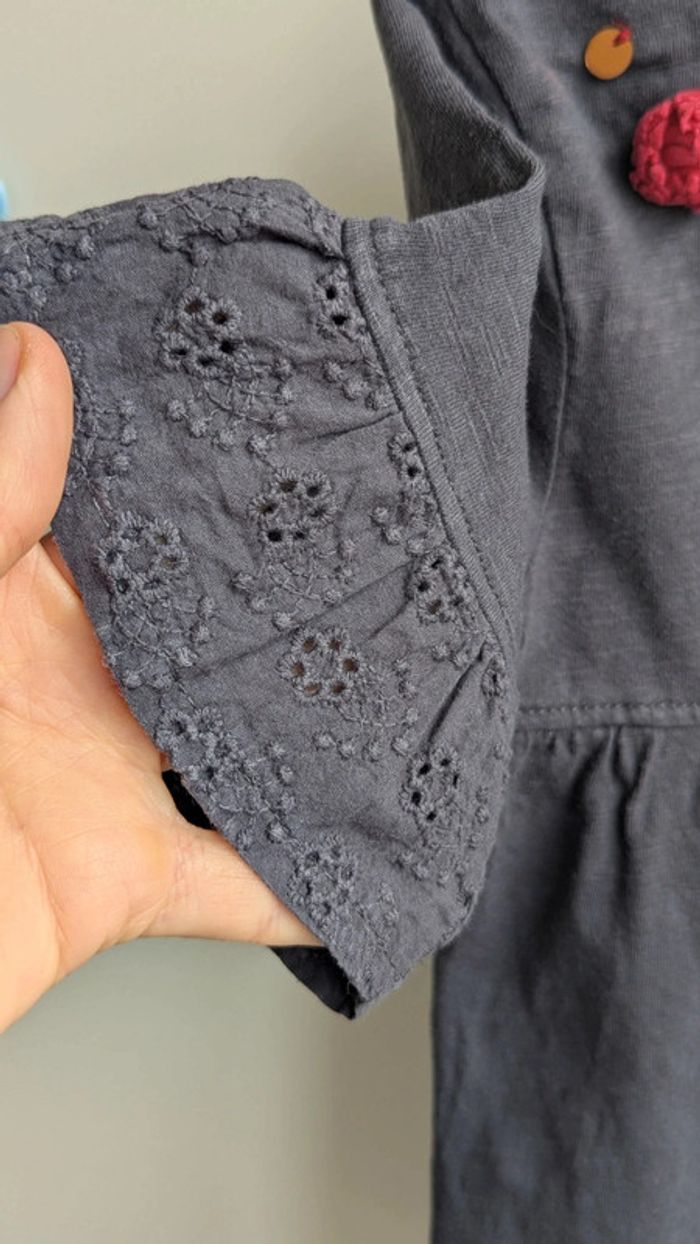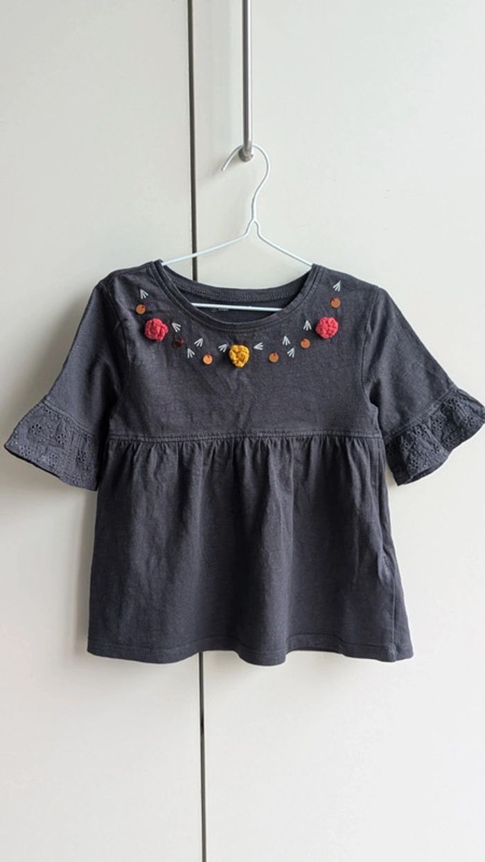 #emychou65_4ans #emychou_5ans T-shirt avec broderies aux manches Gris foncé, anthracite Petites fleurs et sequins au col Ok 4 ans en style tunique Gémo Maison non fumeur