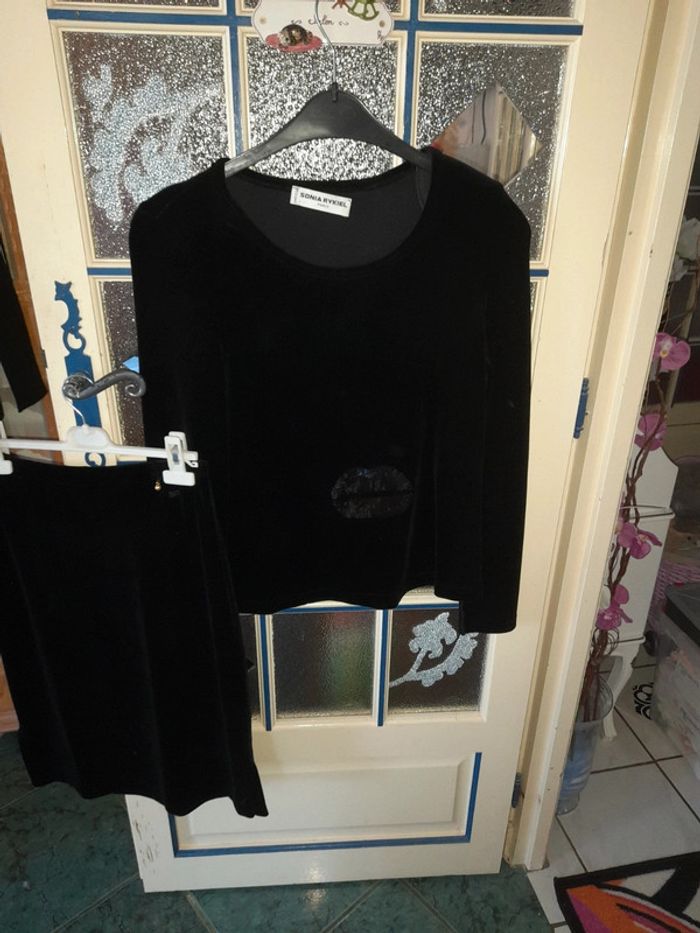 Ensemble Sonia Rykiel luxe comme neuf en velours noir convient à un 38 très chic