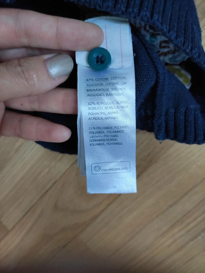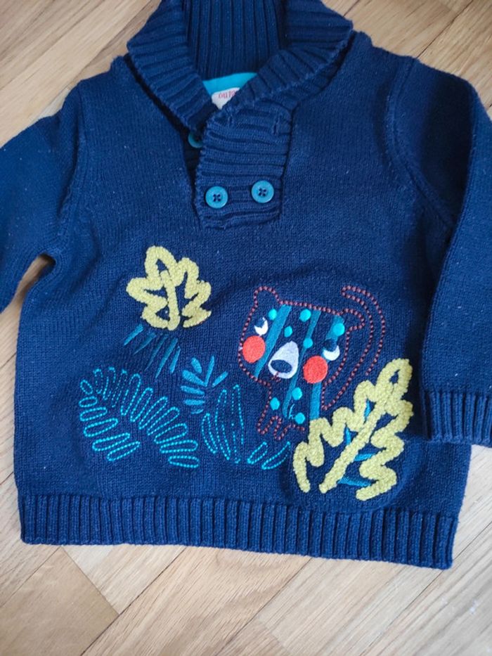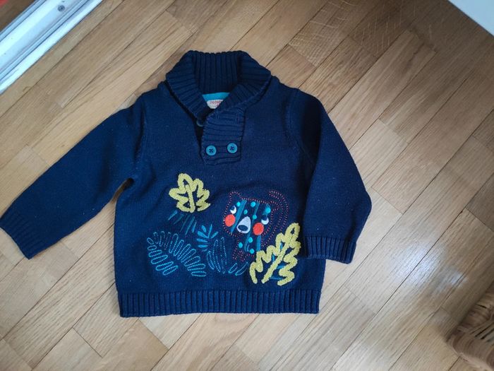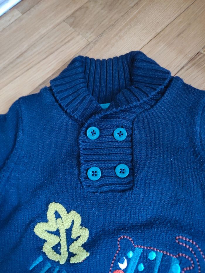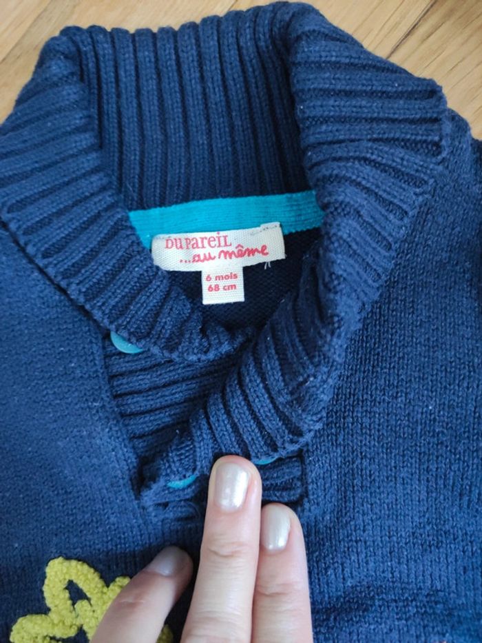 Beau pull bleu marine 6 mois, très peu servi pour un enfant. Très bon état. Coton mélangé.