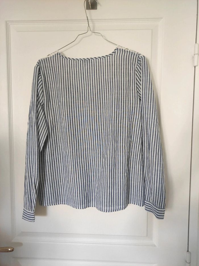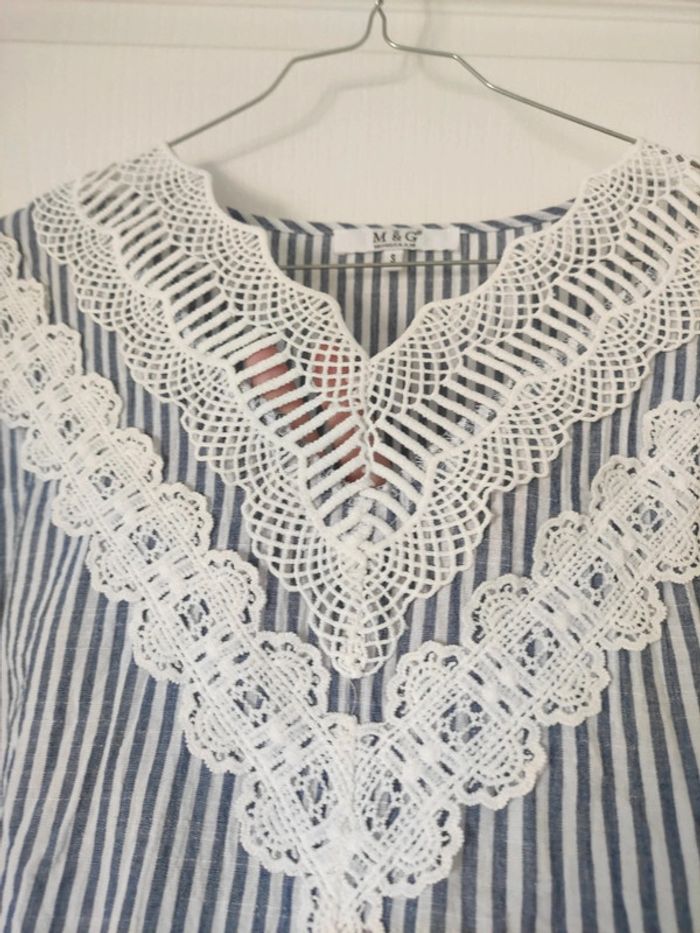 Blouse chemise coton col V dentelle taille S - photo numéro 3