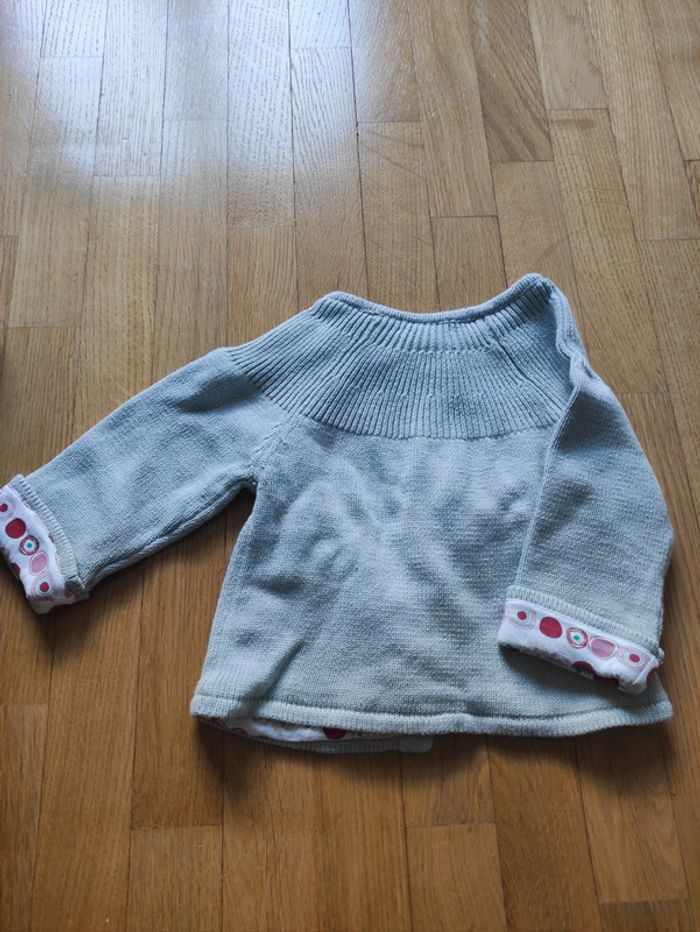 Gilet avec bouton pression, 9 mois, en parfait état. Mi saison. Taille assez grand.