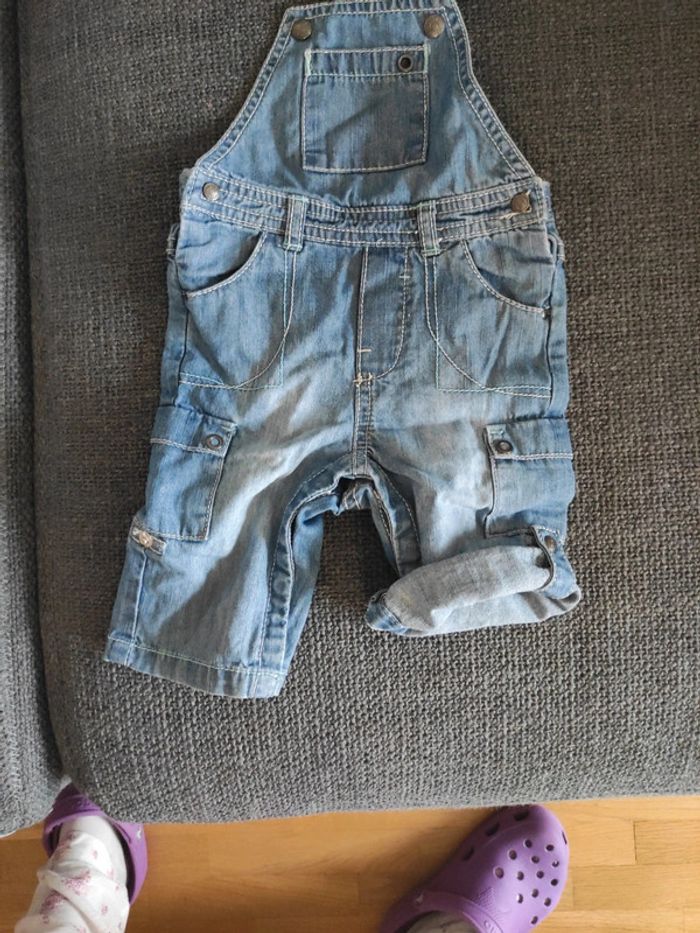 Polimo blanc manche courte marque Clayeux 6 mois 67cm, salopette jean léger marque obaibi 3 mois mais taille très grand, équivaut 6 mois quand je compare avec les autres salopette. Longueur de l'épaule à entre-jambe 38cm si vous préférez comparer avec votre enfant. Elle peut faire pantalon longue ou court comme dans la photo. Très bon état. Pas de tâche.