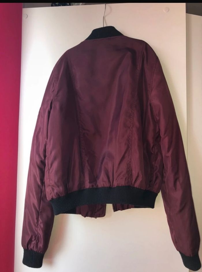 bomber Bordeaux porter quelque fois, aucun défaut à part sur un bouton de la poche gauche de légère rayure et une légère perte de couleur mes qu'il ne se voit pas au loin voir photo 4 #joannaaaveste #bomber #bomberjacket #veste