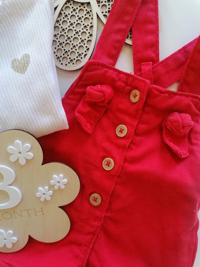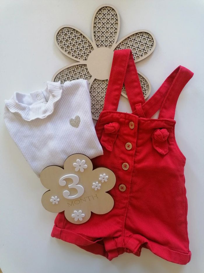 Ensemble salopette rouge + tee-shirt - Tape à l'oeil - 3 mois