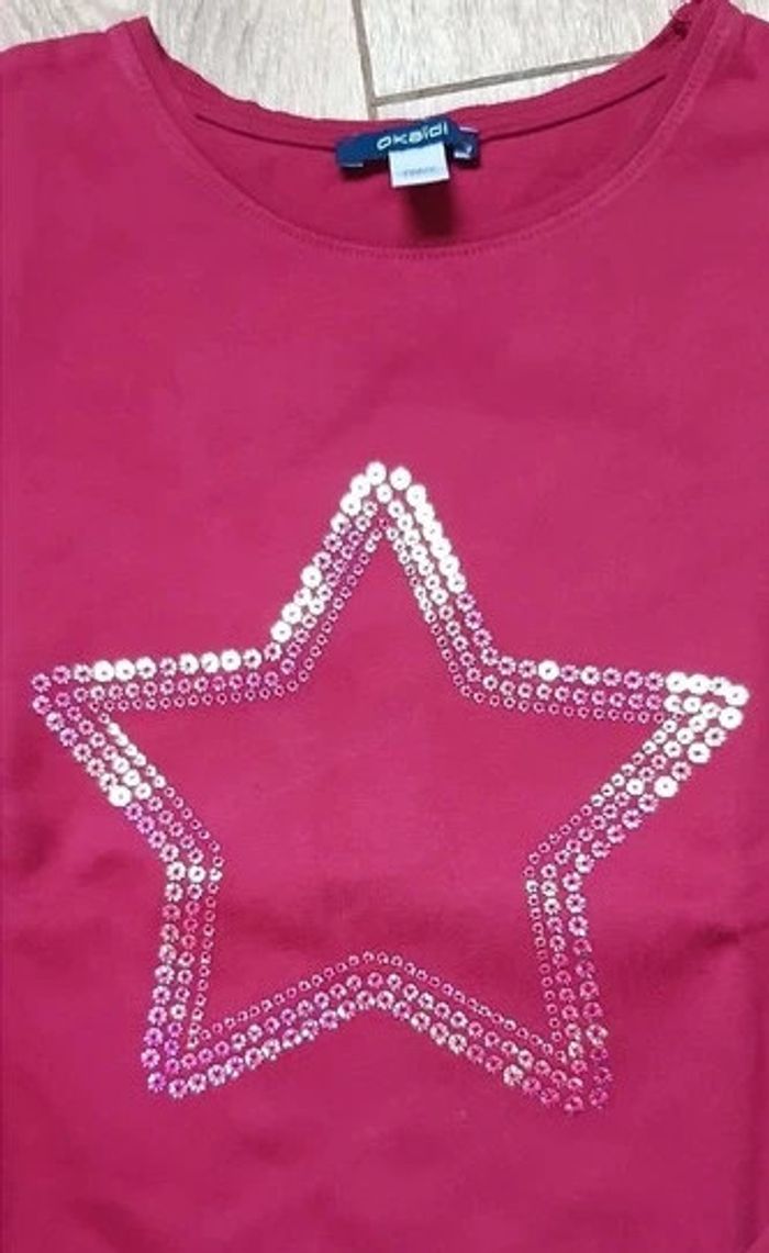 Tee-shirt ML okaidi Bordeaux avec séquins 10 ans en parfait état - photo numéro 1