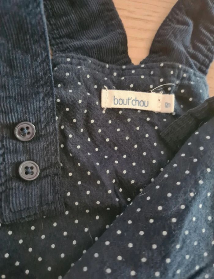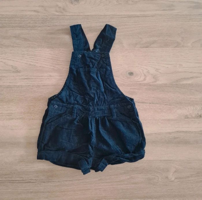 Salopette short velours bleue marine 12 mois Bout'chou S ouvre à l entre jambe #dresskids12m #dresskidsboutchou