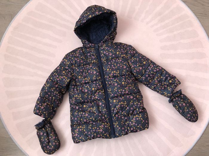 Veste fille avec motifs fleurs + gants assortis 9-12 mois