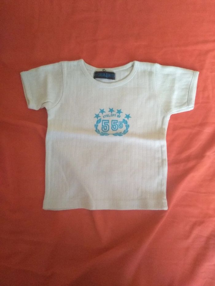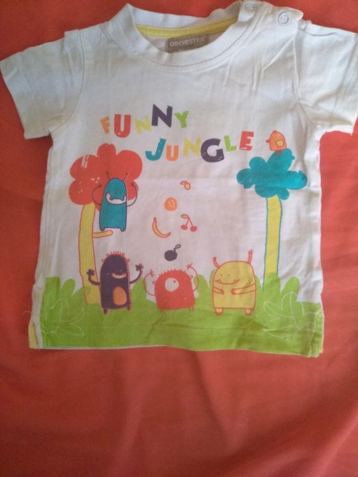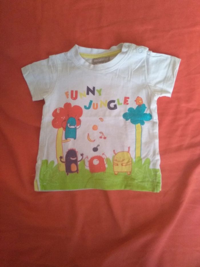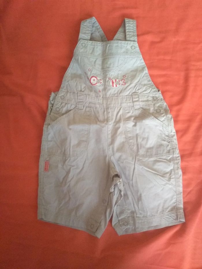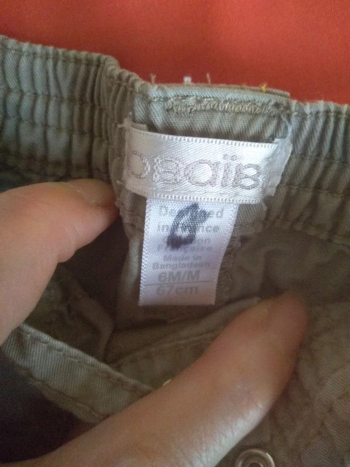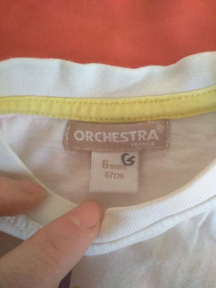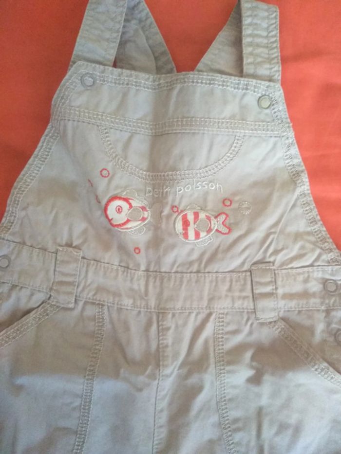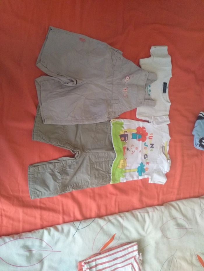 Lot 6 mois composé d'un pantalon Obaïbi, d'une salopette short fine U collection, d'un t shirt manches courtes Orchestra et d'un t shirt manches courtes sans marque.