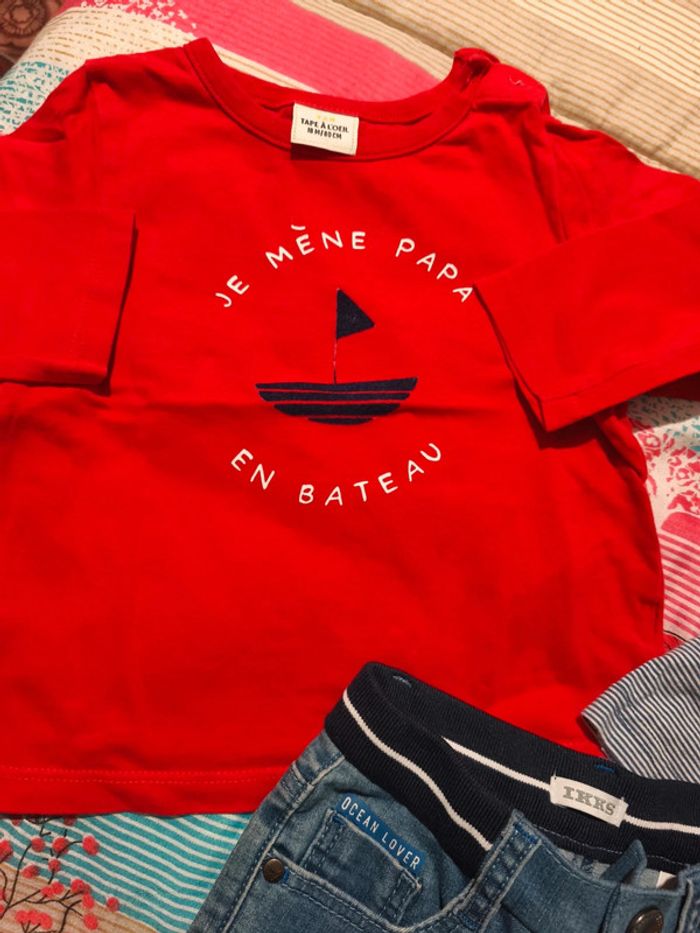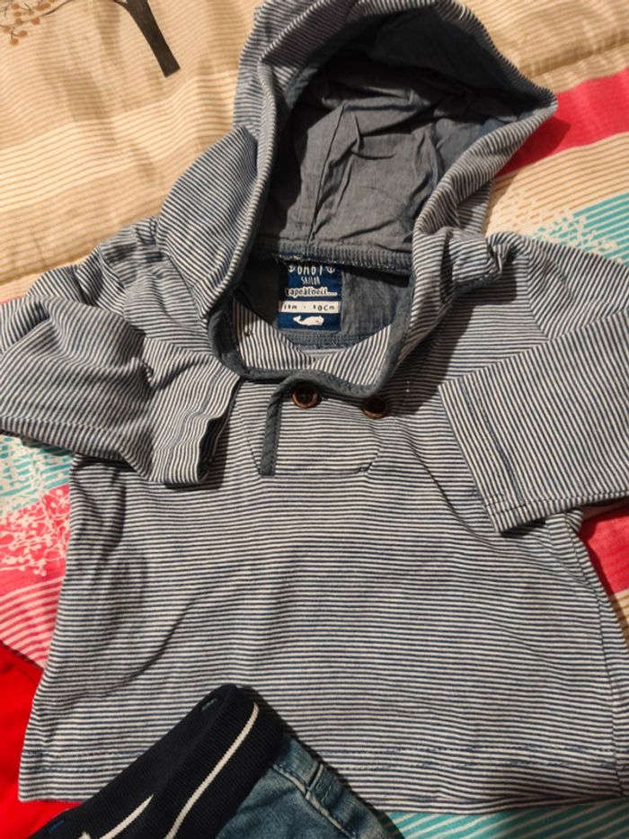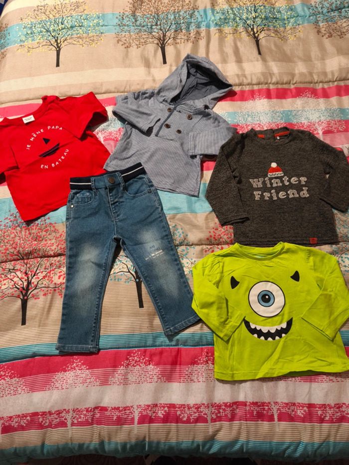 En très bon état 1 jean IKKS 1 tee shirt Tape à l'oeil 1 tee shirt à capuche Tape à l'oeil 1 tee shirt Orchestra 1 tee shirt Disney #estrella17230garçon18mois