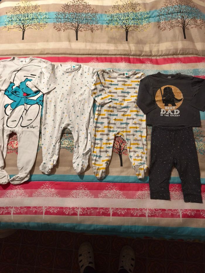 En très bon état 1 pyjama H&M 12/18 mois taille grand 2 pyjamas Tex 1 pyjama 2 pièces Star Wars #estrella17230garçon12mois