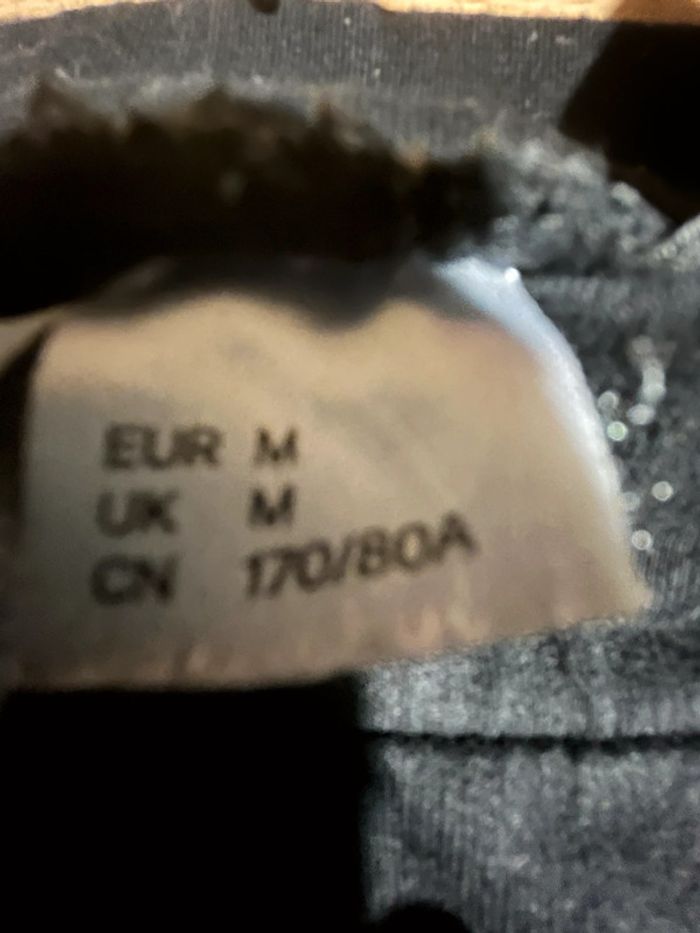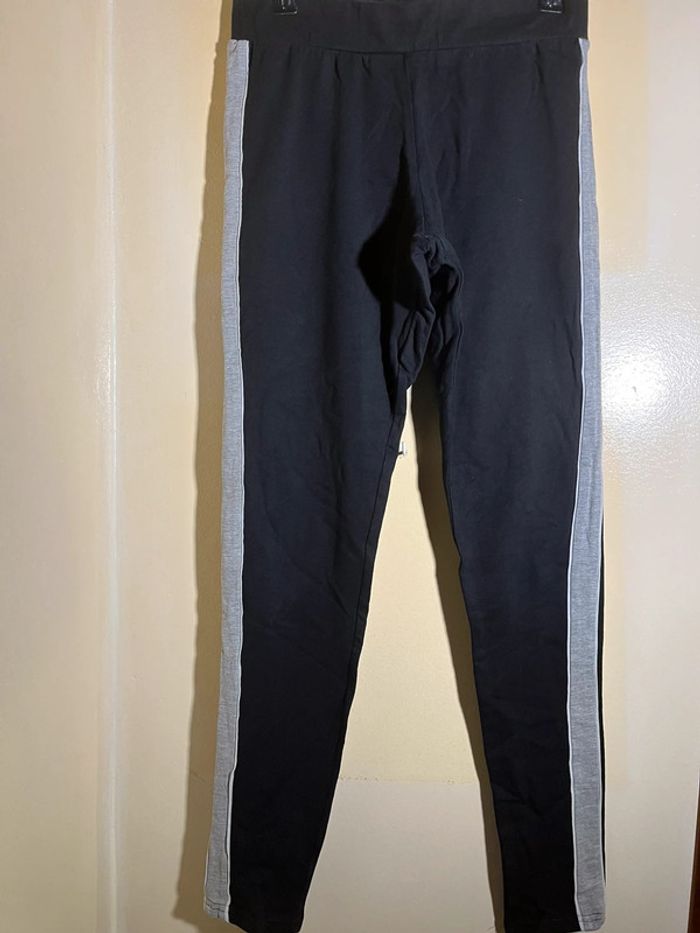 Legging noir de sport ou tenue décontracté. Taille élastique. Bande sur le côté grise et blanche. Longueur de jambe 100cm. Pas de tâches , ni trous, ni marque d usures.
