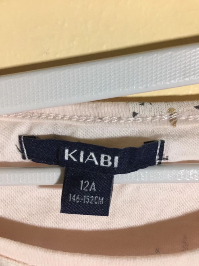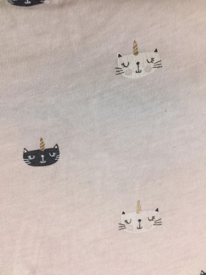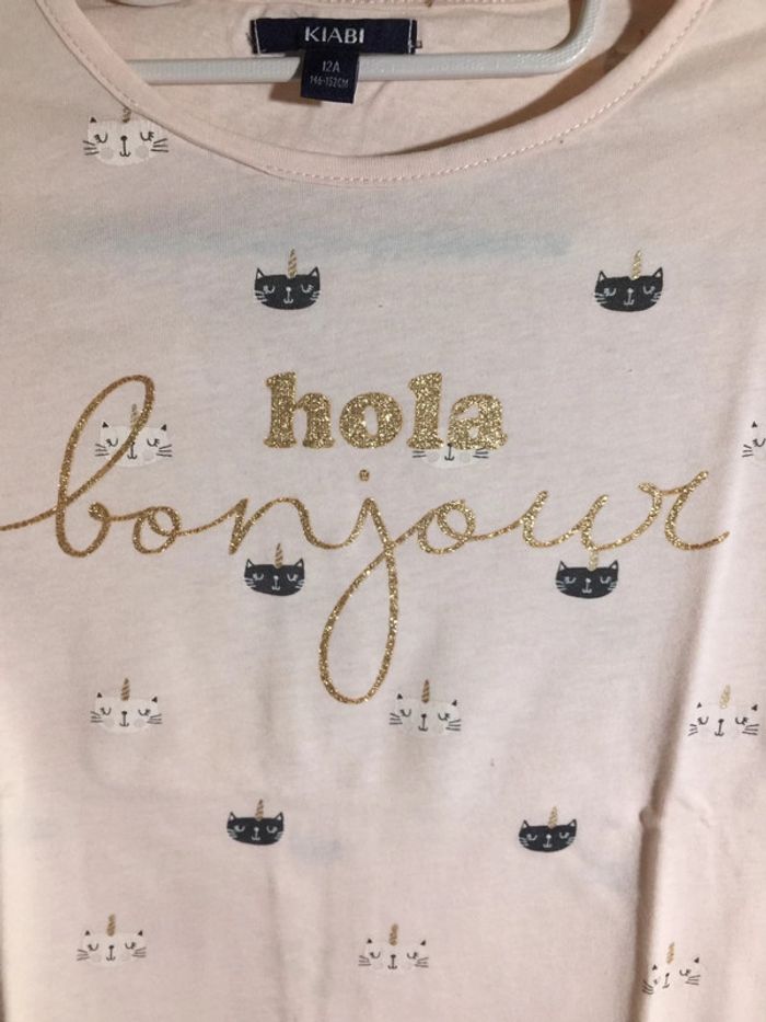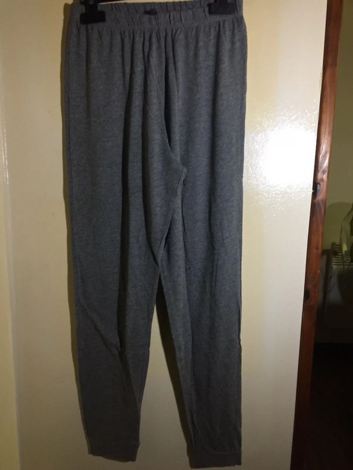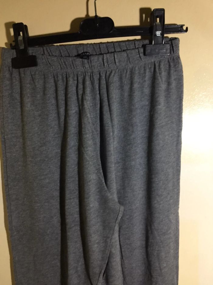 pyjama 2 pièces pantalon gris taille élastique. haut rose pâle avec motif et slogan brillant. manches longues. très bon état aucunes tâches ni marques d usures