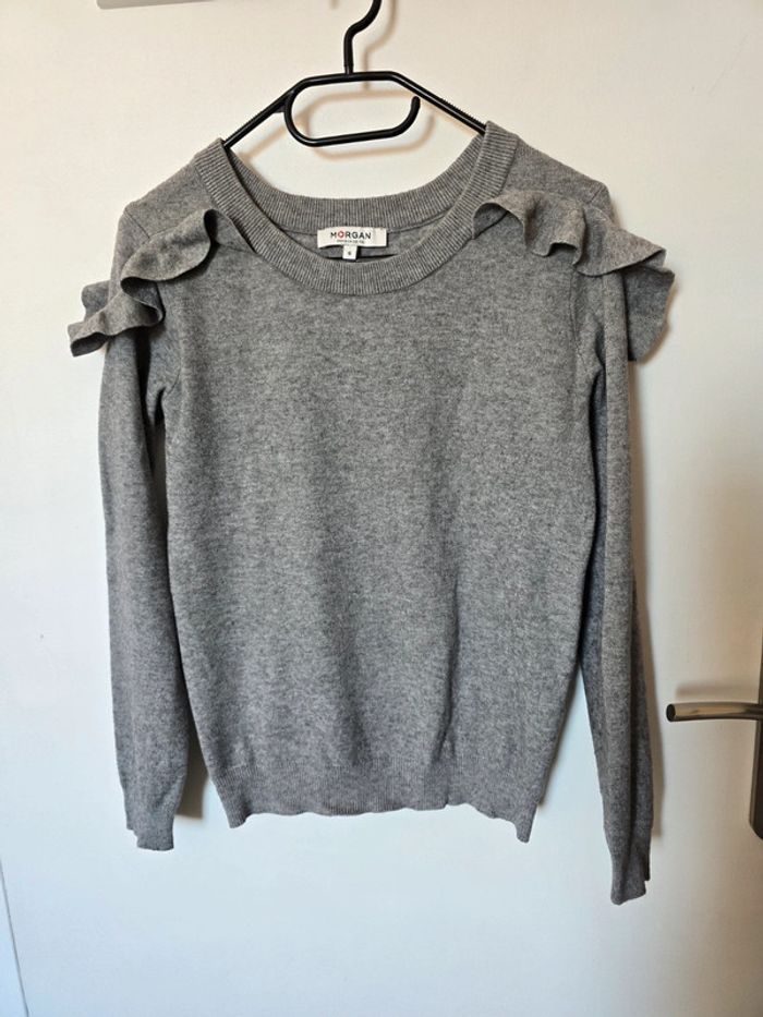 Pull gris avec fronces sur les epaules très bon état taille S dimensions et composition sur les photos Pas de photos portées #flore37_femme_tailleS #morgan #morgandetoi #morganfemme #morgan36