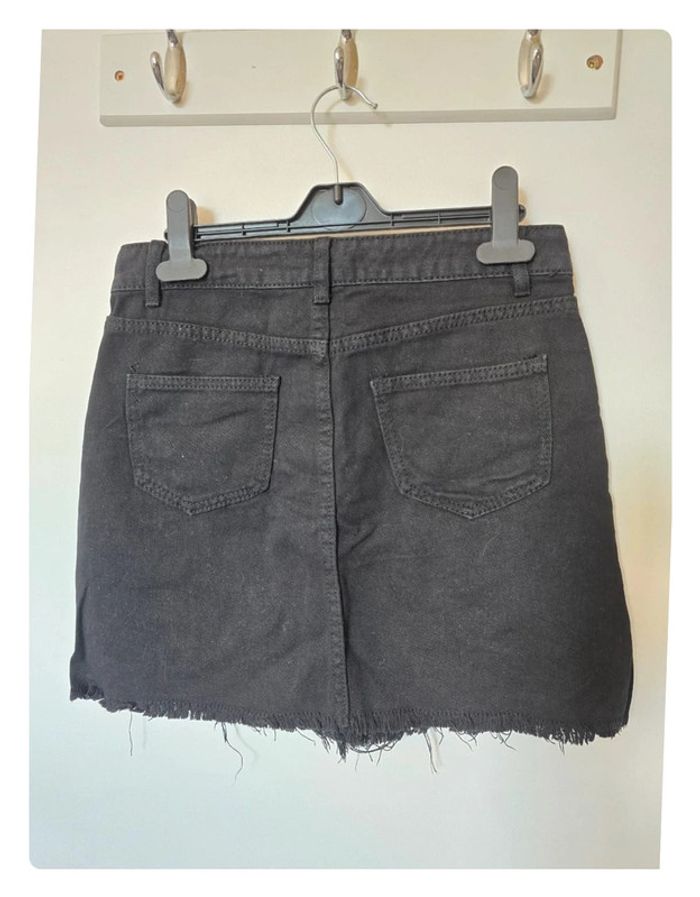 Jupe en jean courte noire très bon état taille 34, pas de photos portées trop petite pour moi. Dimensions sur les photos #flore37_femme_tailleXS #jupefemme