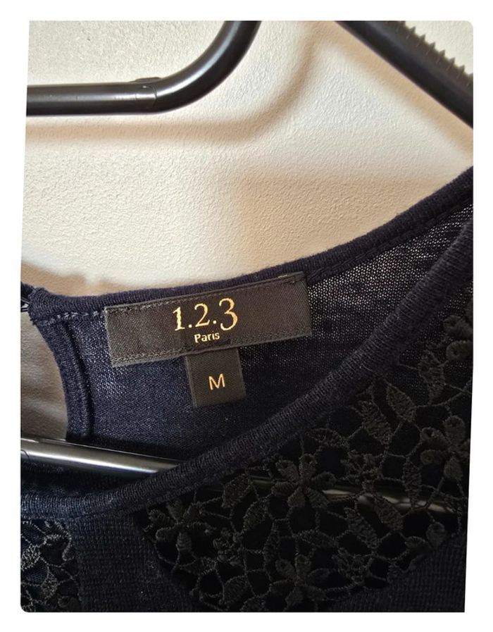 Tee shirt bleu marine avec dentelle noire Maison 123 très bon état taille M Dimensions sur les photos Pas de photos portées #flore37_femme_tailleM #flore37_reusses #maison123 #maison123paris