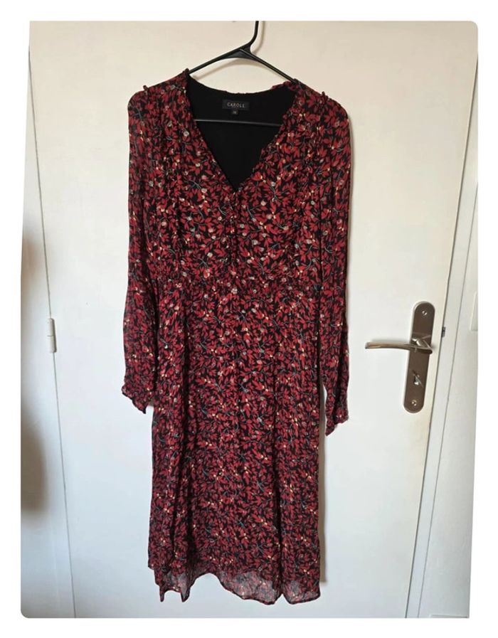 Robe longue à fleurs rouge Caroll taille 36 très bon état Dimensions et composition sur les photos #flore37_femme_tailleS #flore37_reusses #caroll #caroll36 #carollparis
