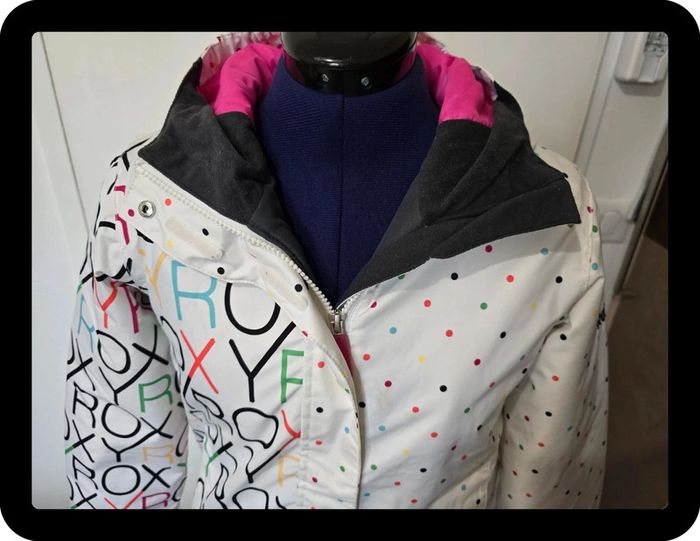 Veste de ski Roxy blanche bon état, quelques tâches, voir les photos 12 ans correspond à un XS dimensions et composition sur les photos ⚠️ Pas d’envoi Vinted Go ⚠️ #flore37_femme_tailleXS #flore37_fille_12 #roxy