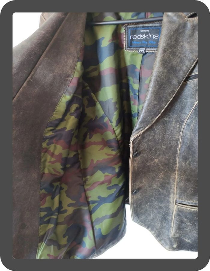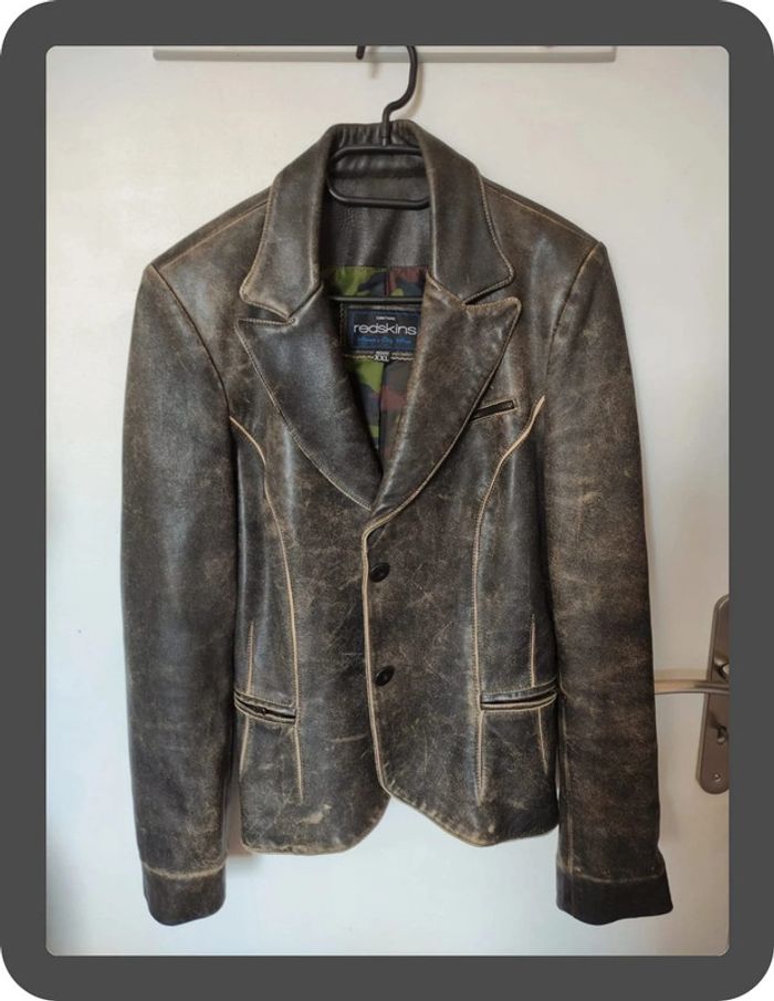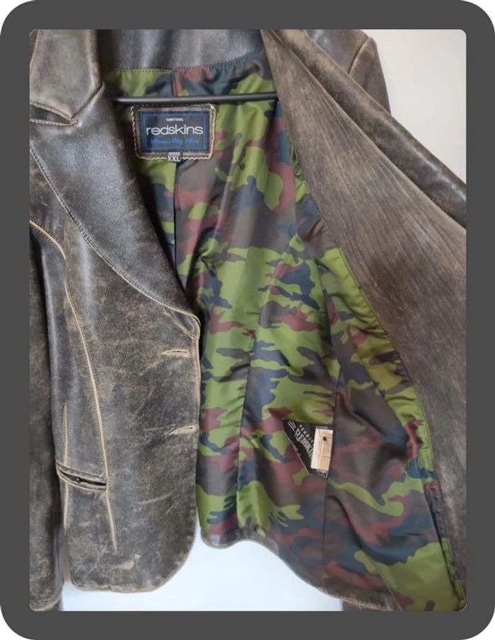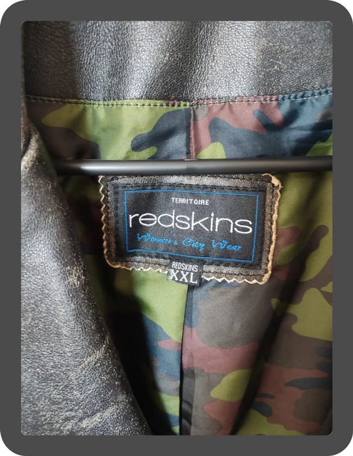 Veste Redskins vintage en cuir très bon état peu portée effet vieilli taille XXL dimensions et composition sur les photos Pas de photos portées #flore37_femme_tailleXXL #flore37_reusses #redskins