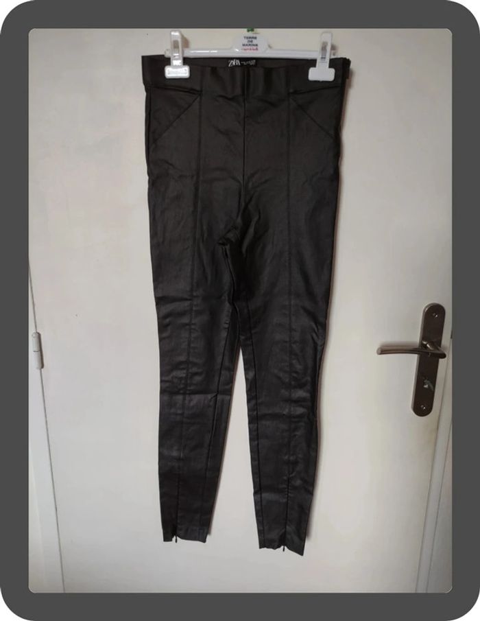 Pantalon Zara noir enduit très bon état taille M/38 dimensions et compostion sur les photos, fermeture éclair sur le côté et aux chevilles #flore37_femme_tailleM #flore37_reusses #zara #zarawoman