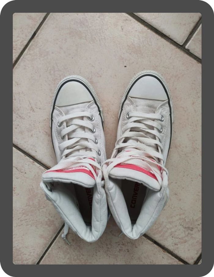 Converse blanche montante taille 38 très bon état ⚠️ N’hésitez pas à faire un tour sur mon dressing, je fais le tri et les réductions sur les lots sont activées ⚠️ #flore37_chaussures #flore37_reusses #converse #converseallstar