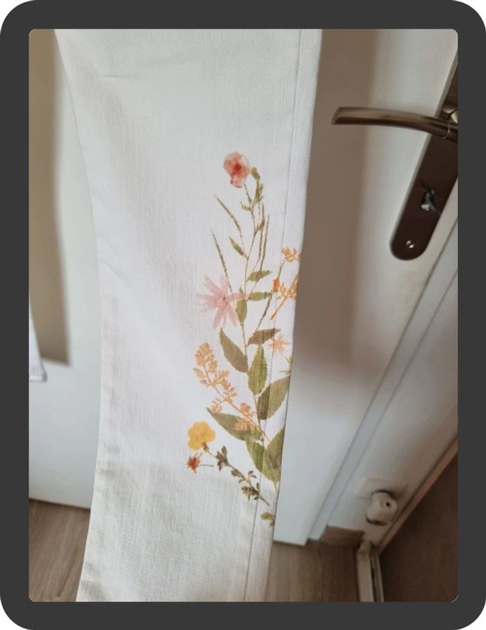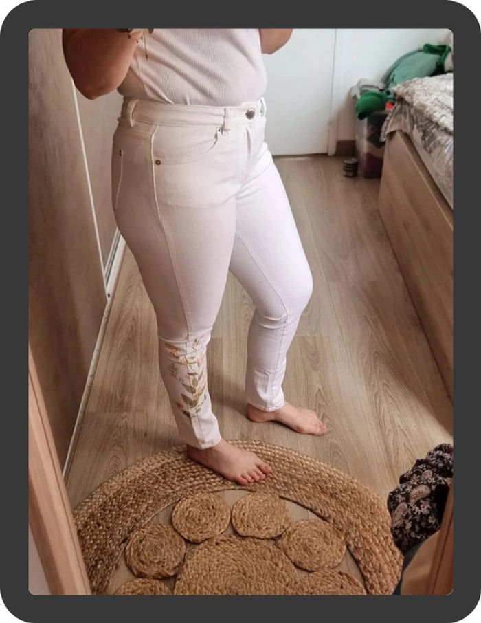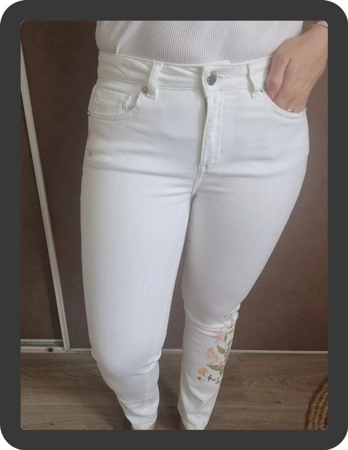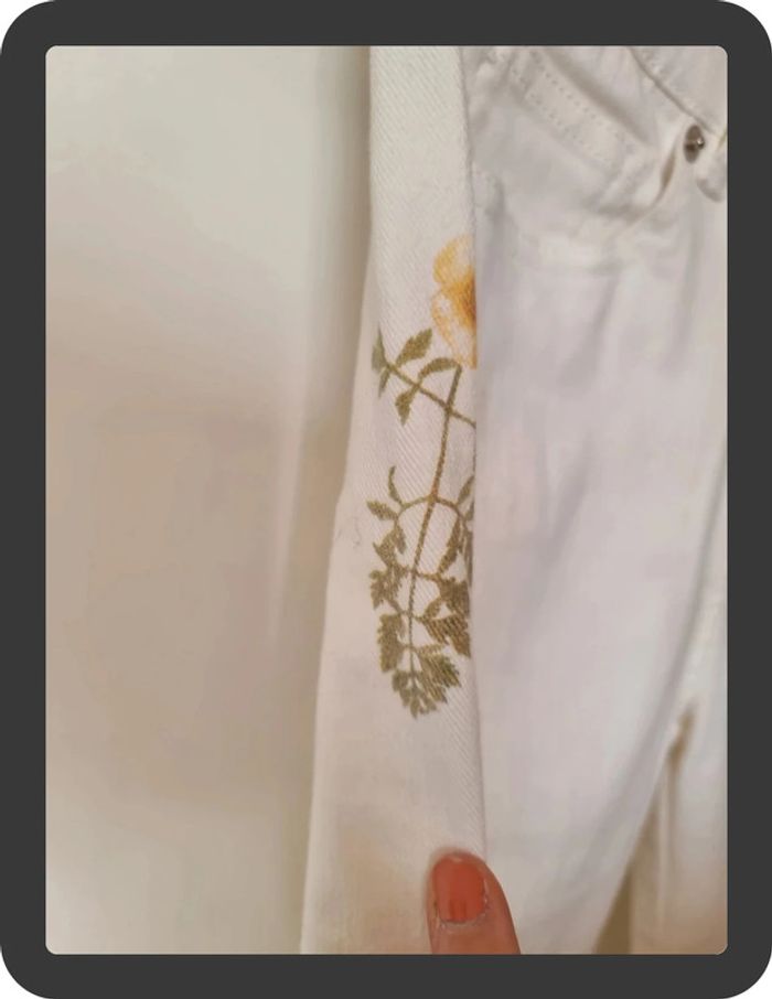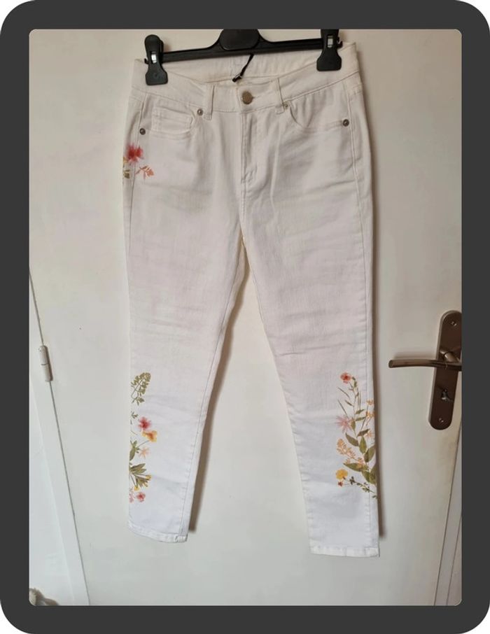 Jean blanc neuf avec des fleurs sur les côtés coupe skinny 7/8 Maison 1 2 3 taille 36 prix neuf 85€ #flore37_femme_tailleS #maison123