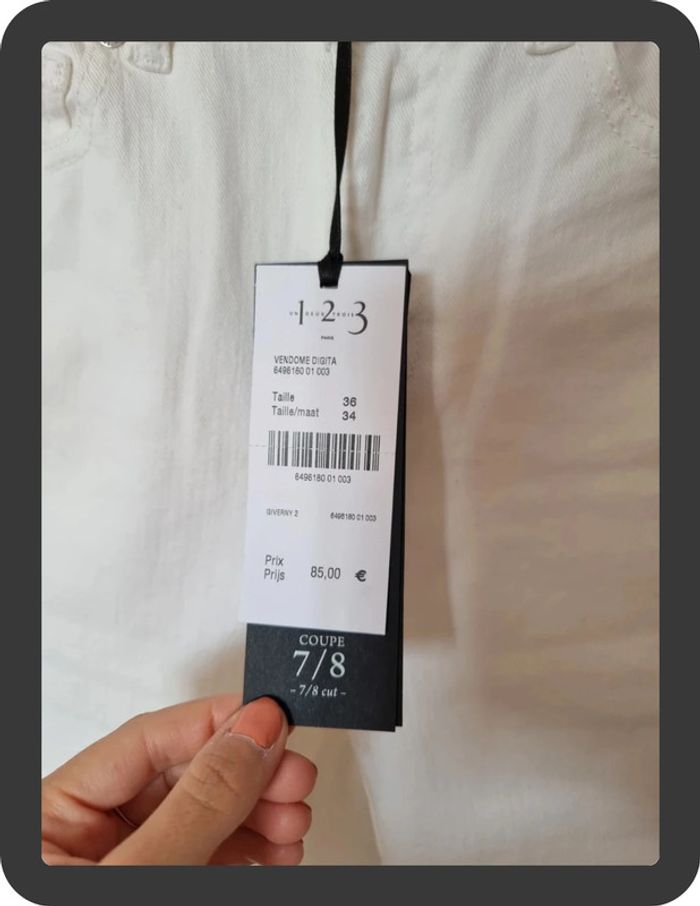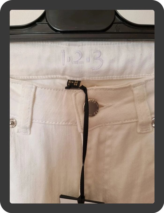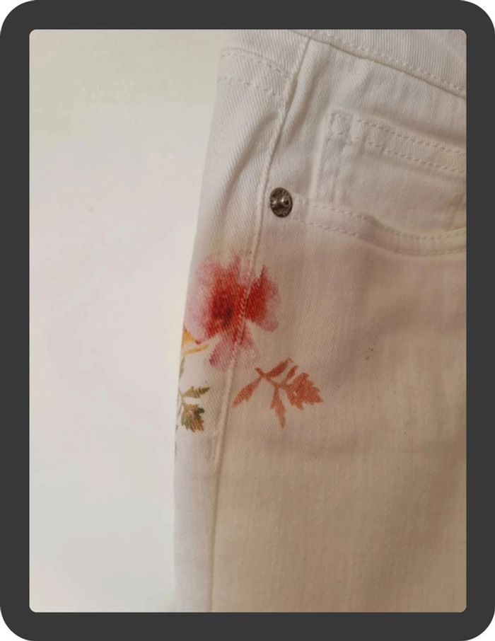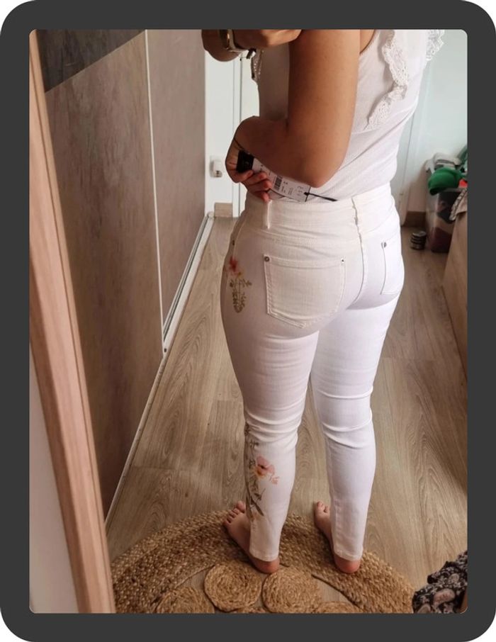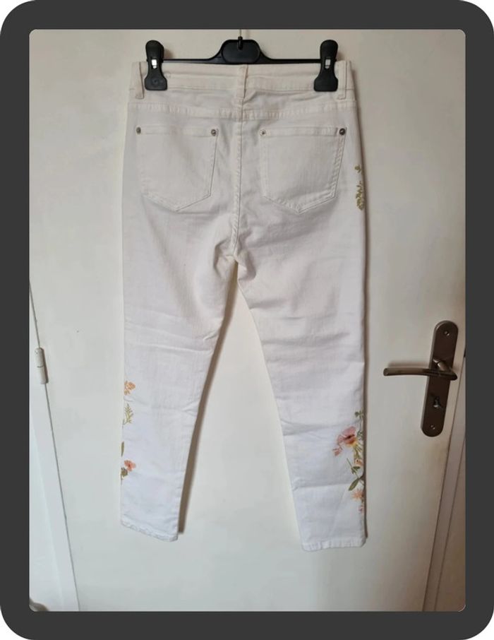 Jean blanc neuf avec des fleurs sur les côtés coupe skinny 7/8 Maison 1 2 3 taille 36 prix neuf 85€ #flore37_femme_tailleS #maison123