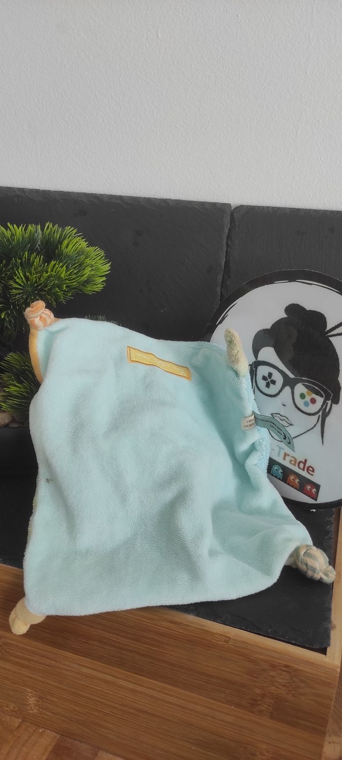 Doudou Carré Plat Chat Jaune Bleu Blanc Vert Casino Bébérêve  Les Petit Amis - photo numéro 2