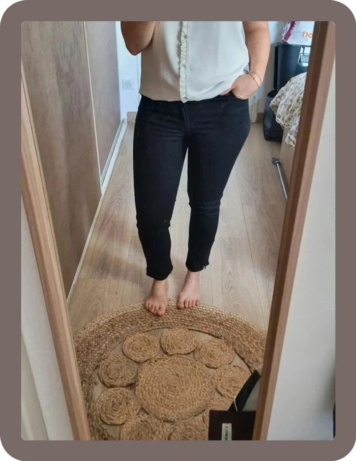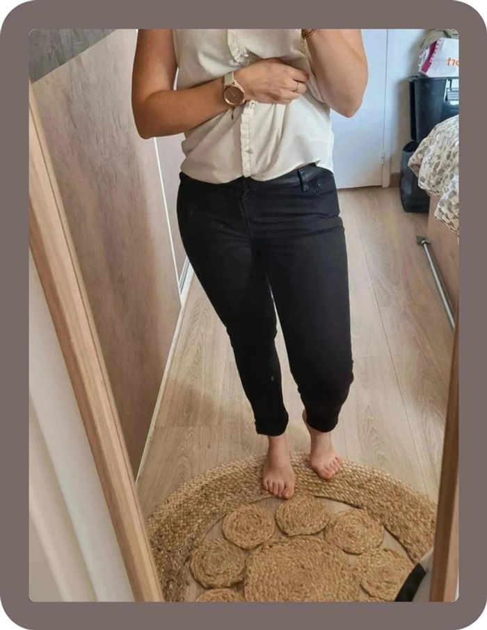 Très bon état comme neuf, très peu porté, un peu trop petit pour moi, taille basse, cuir au niveau de la ceinture